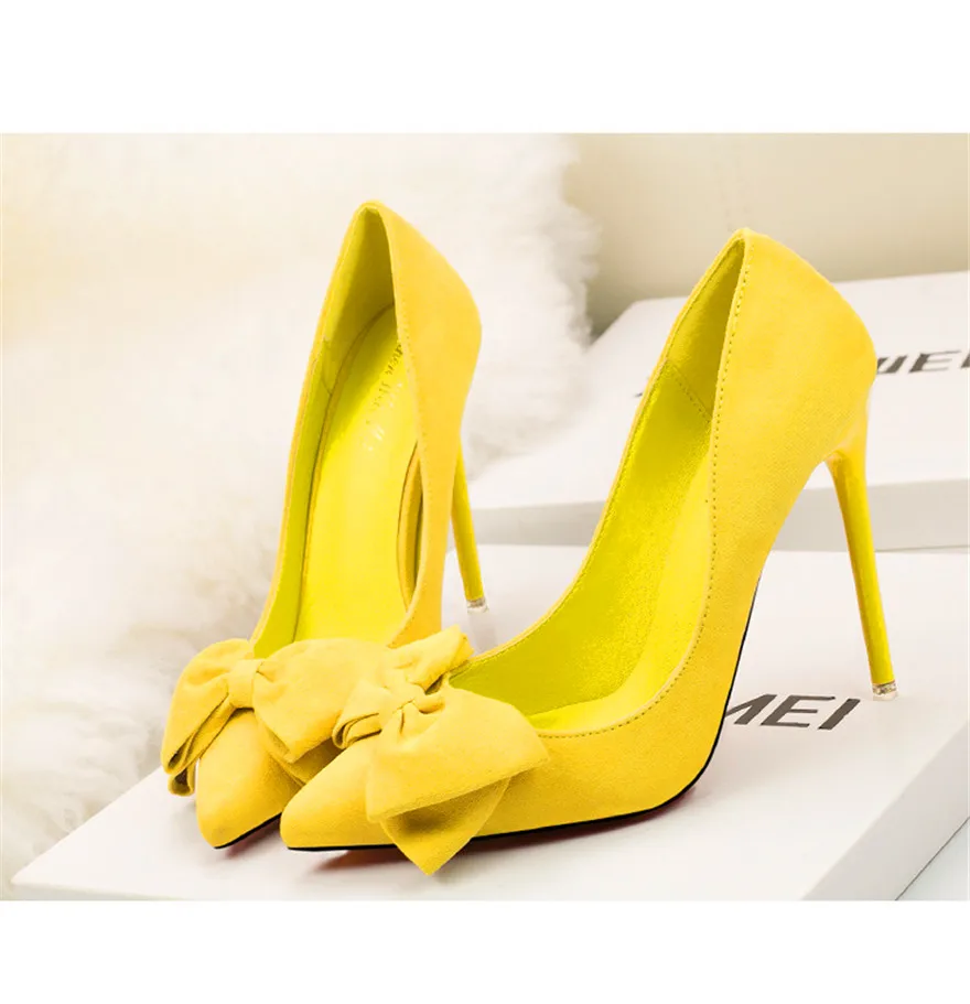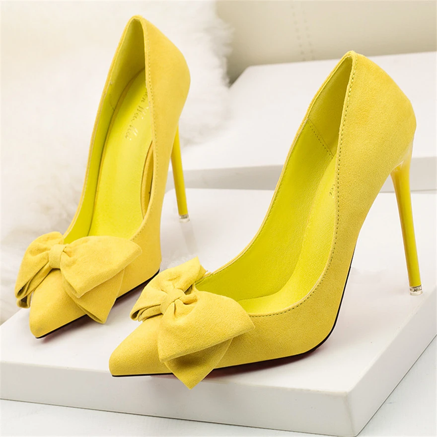 Осенние женские туфли на высоком каблуке с острым носком женские пикантные туфли-лодочки из флока на шпильке 11 см женские модные модельные свадебные туфли с бантом 6 цветов
