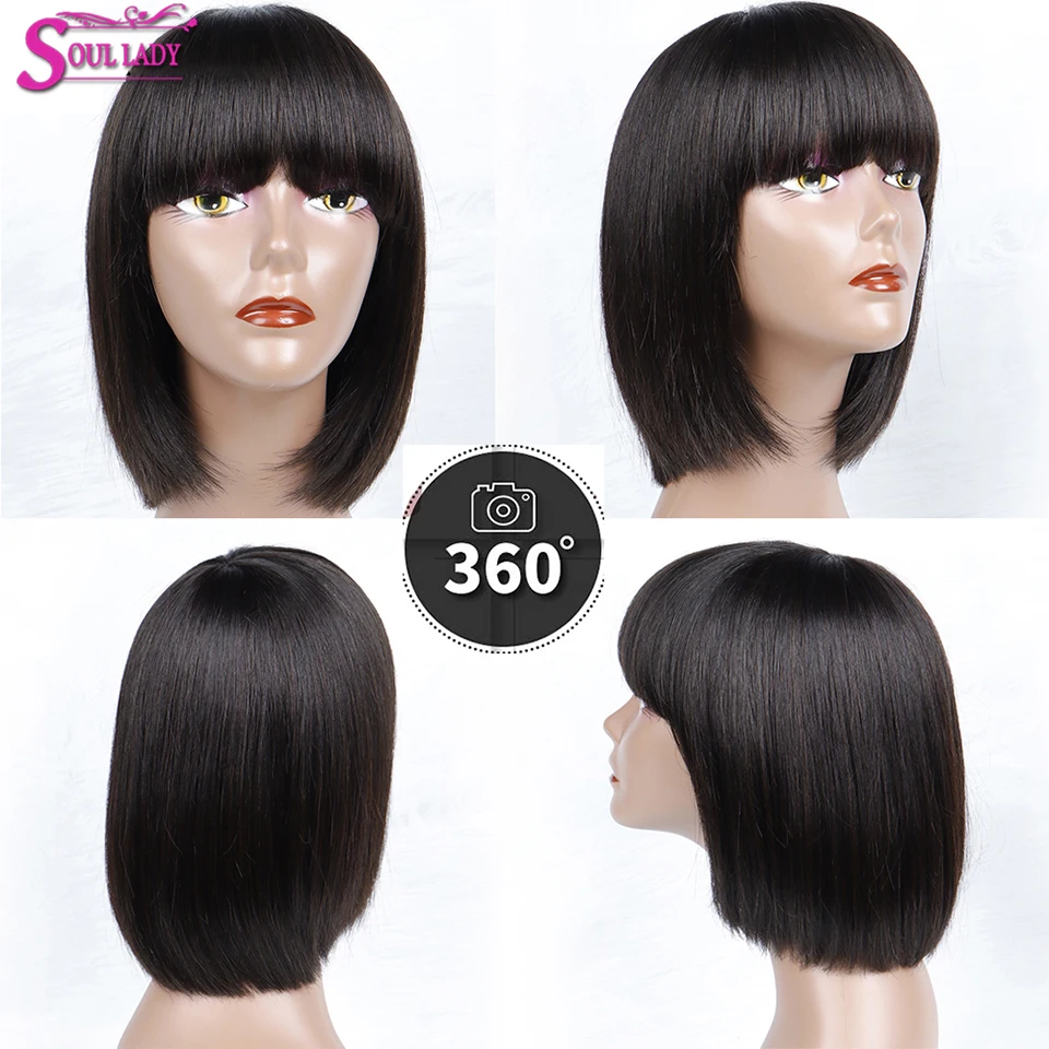 Парик короткий боб с челкой, прямые бразильские парики из человеческих волос с челкой, парики без тюка из человеческих волос машинной работы для женщин