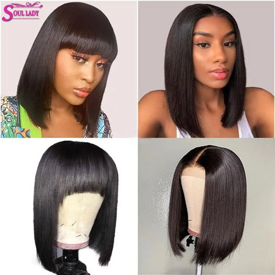 Soul Lady прямые короткие парики из натуральных волос с челкой T Part перуанские парики из натуральных волос на фронте с челкой