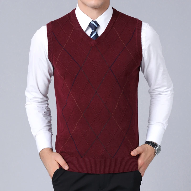 6% шерсть, модный свитер без рукавов для мужчин, кардиган с v-образ...