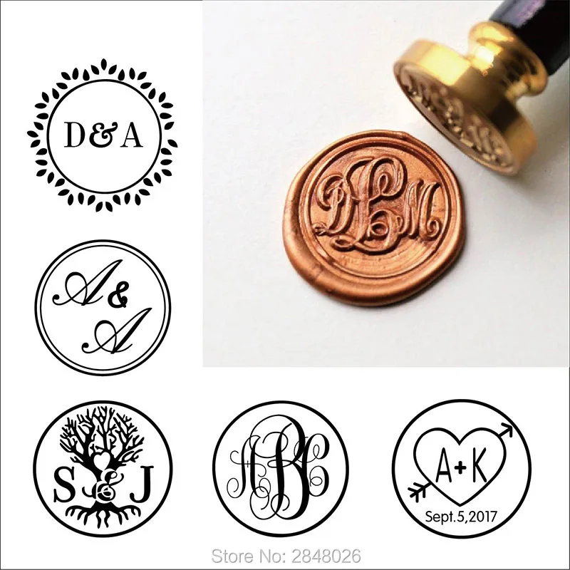 Изготовленный На Заказ деревенский три начального монограмма набор восковых печатей, индивидуальная восковая печать комплект печатей, персонализированные свадебные приглашения, свадебный подарок