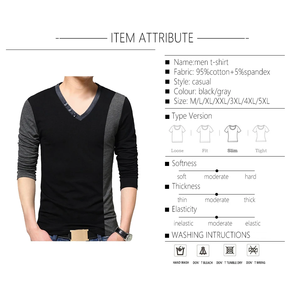 Футболка мужская хлопковая, с длинным рукавом, с V-образным вырезом...