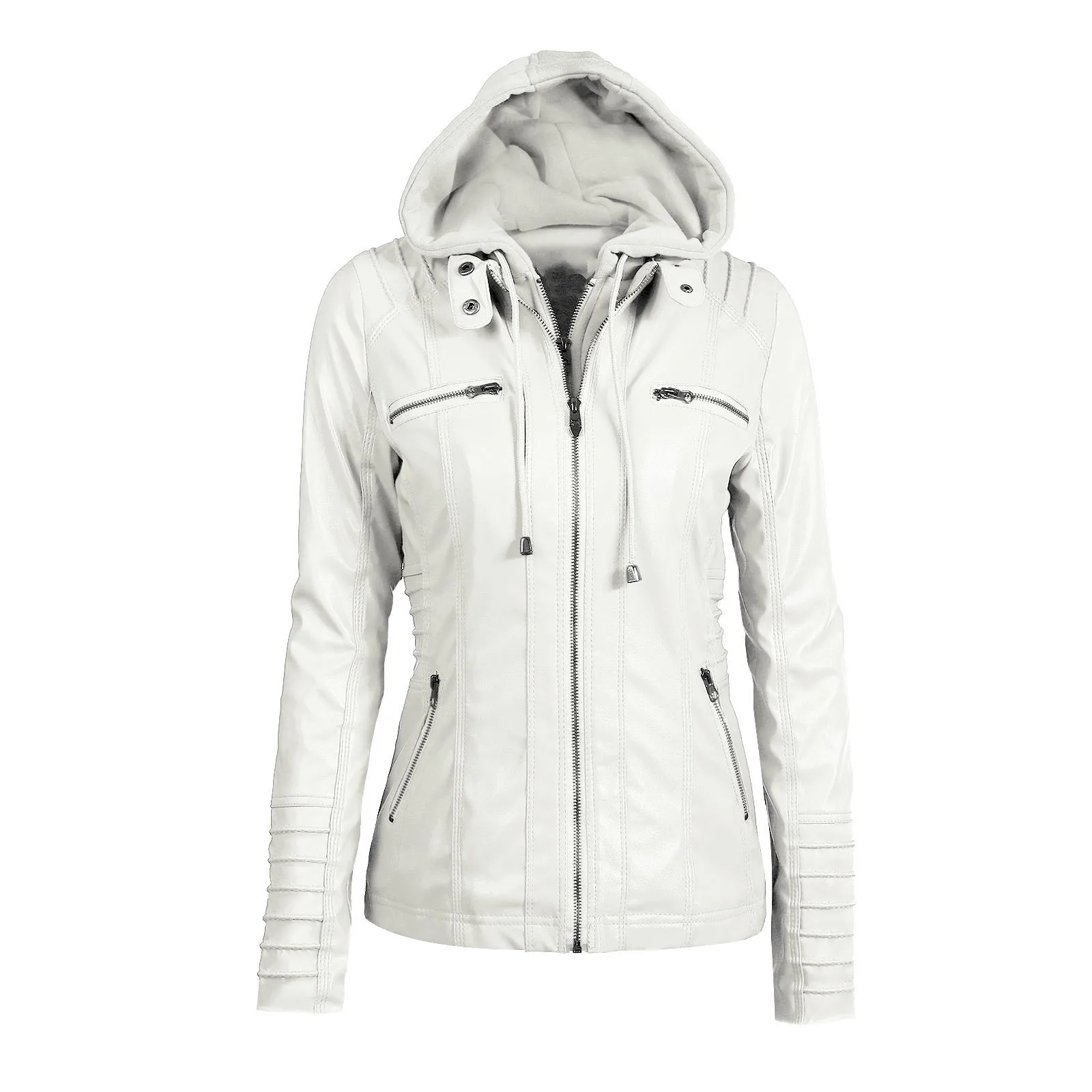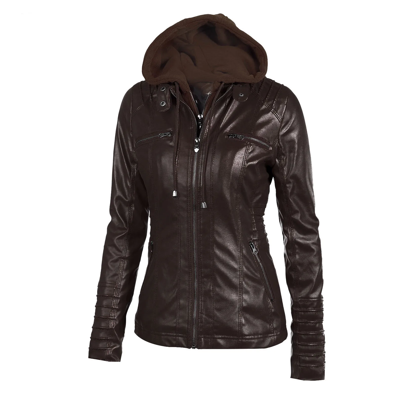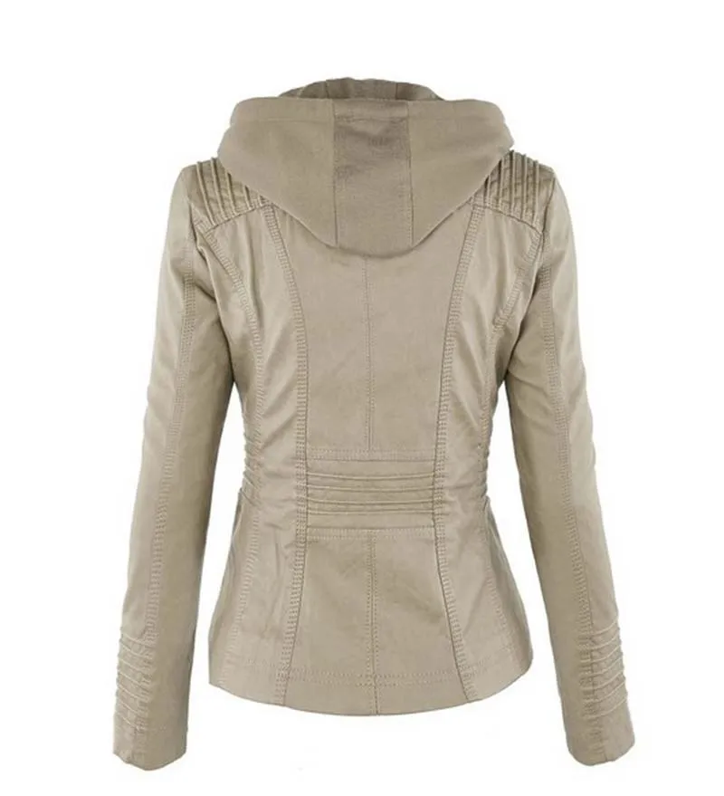 Женское повседневное пальто из ПУ кожи, на молнии, с капюшоном