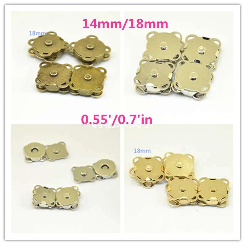 50 шт. 14 мм/18 мм Металлические Магнитные застежки-застежки, пуговицы, кошелек, золото/серебро/античная бронза, шитье, сделай сам, сумки для рукоделия