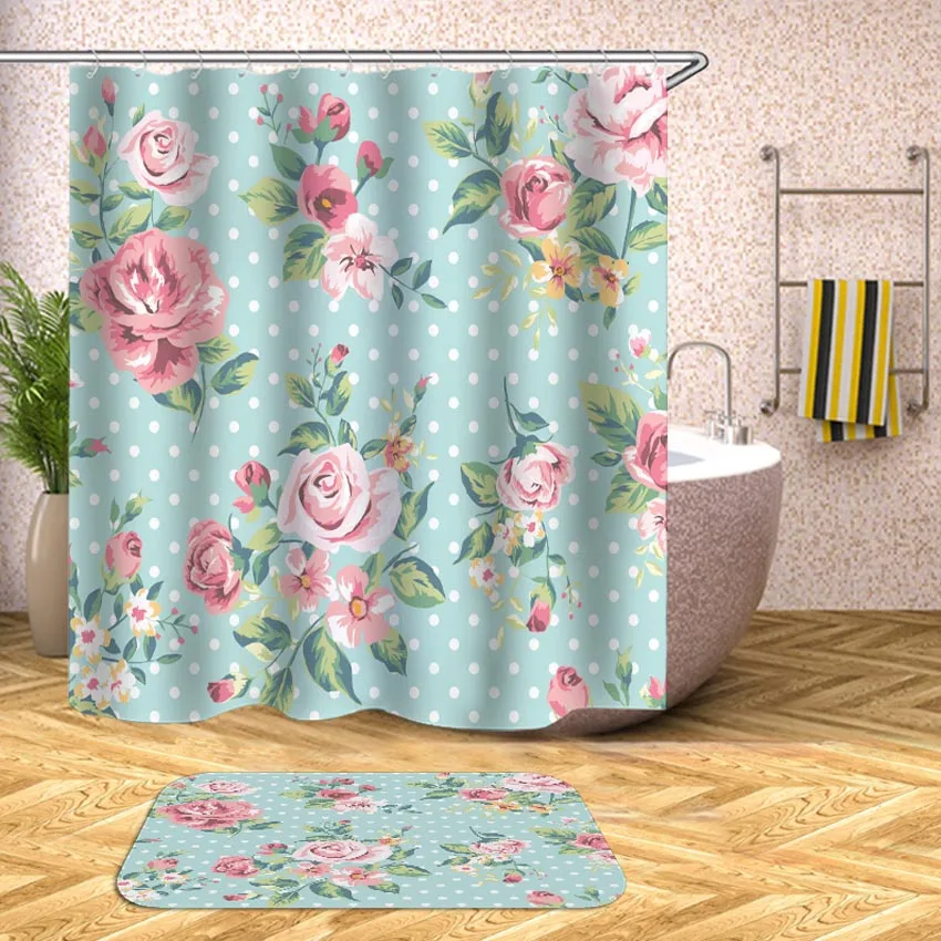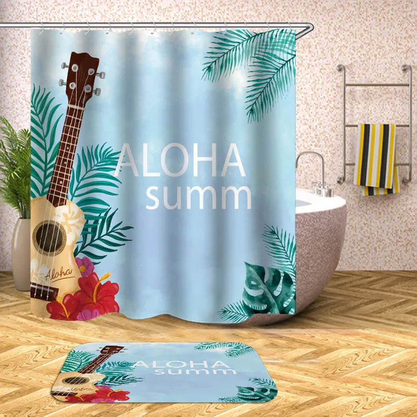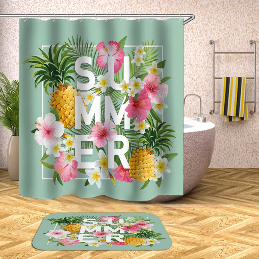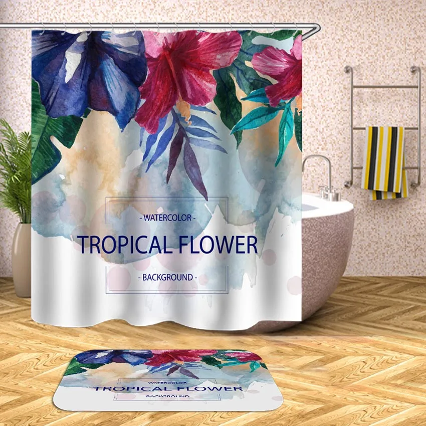 Тропическая занавеска для душа с растениями, с цветами и листьями, водонепроницаемая занавеска для ванной комнаты, большая широкая накидка для ванны, 12 крючков