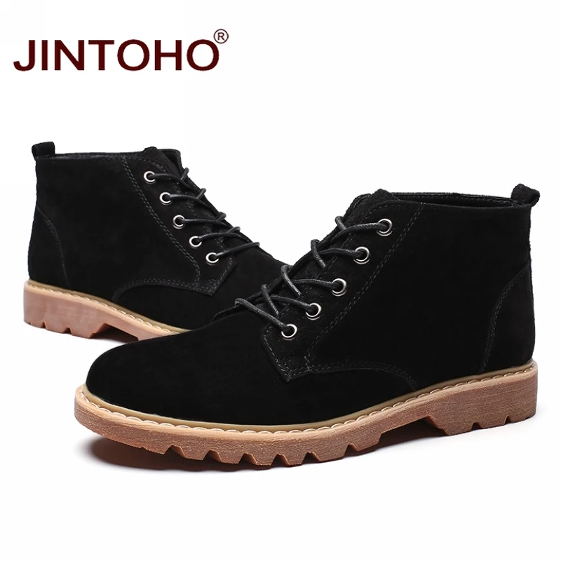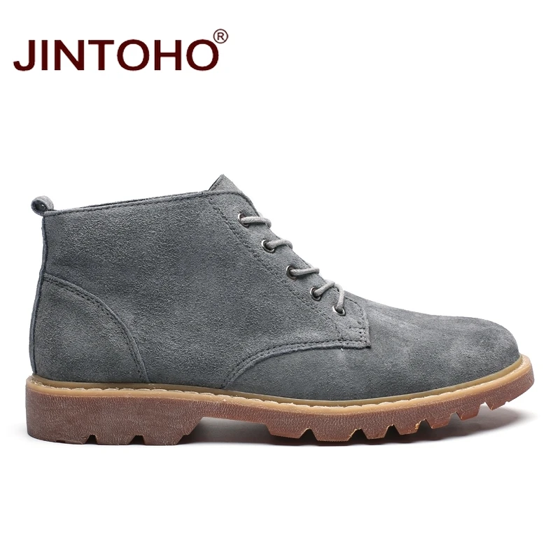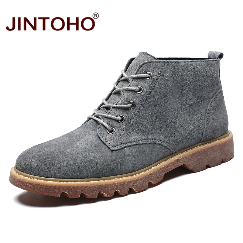 Мужские зимние ботинки JINTOHO большого размера, Замшевые мужские зимние ботинки из коровьей кожи, кожаная обувь на шнуровке, ботильоны для мужчин 2018, мужские кожаные ботинки