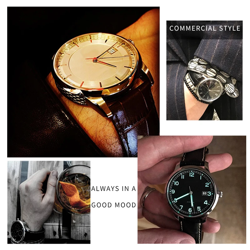 Ремешок кожаный для мужских часов, черный синий коричневый браслет ...