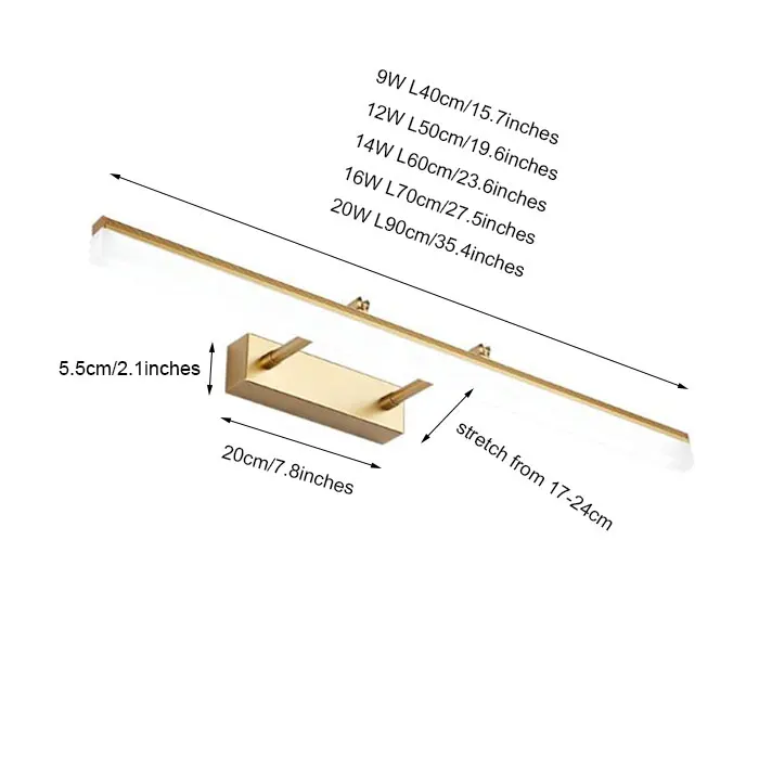 Винтажный растягивающийся светодиодный светильник для туалетного столика, Золотой светодиодный светильник для зеркала в ванной, передняя лампа для макияжа, светодиодный светильник