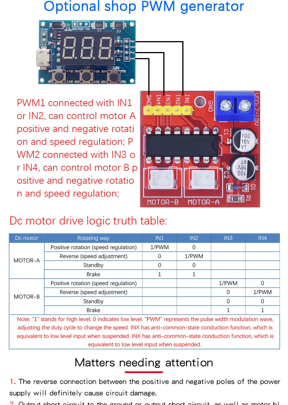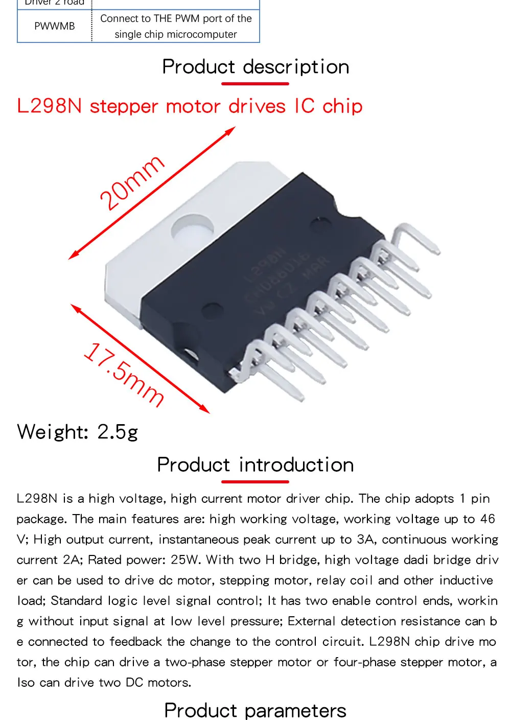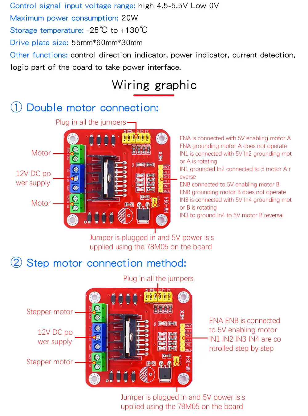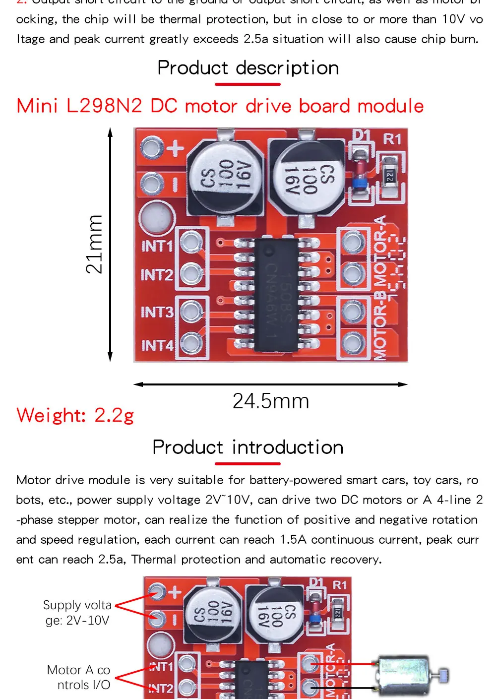 Это не L298, но работает так же как и обычный драйвер, одной ноге LOW другой HIGH и мотор запускается, в отличие от L9110S не потребляет ток на холостых