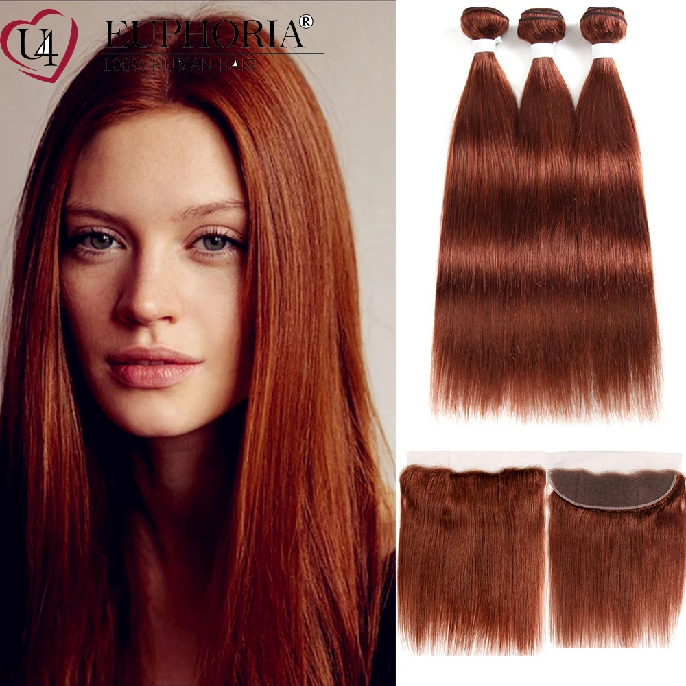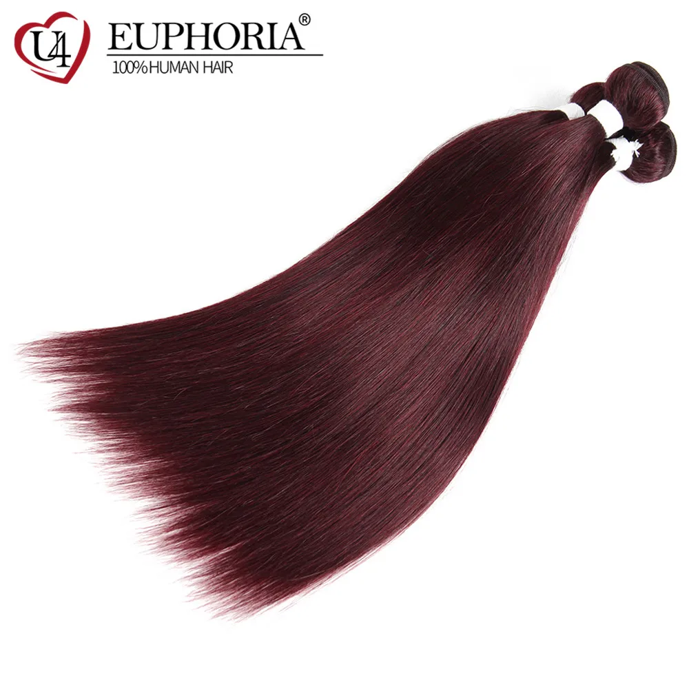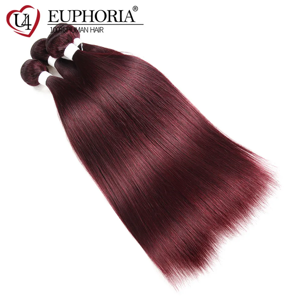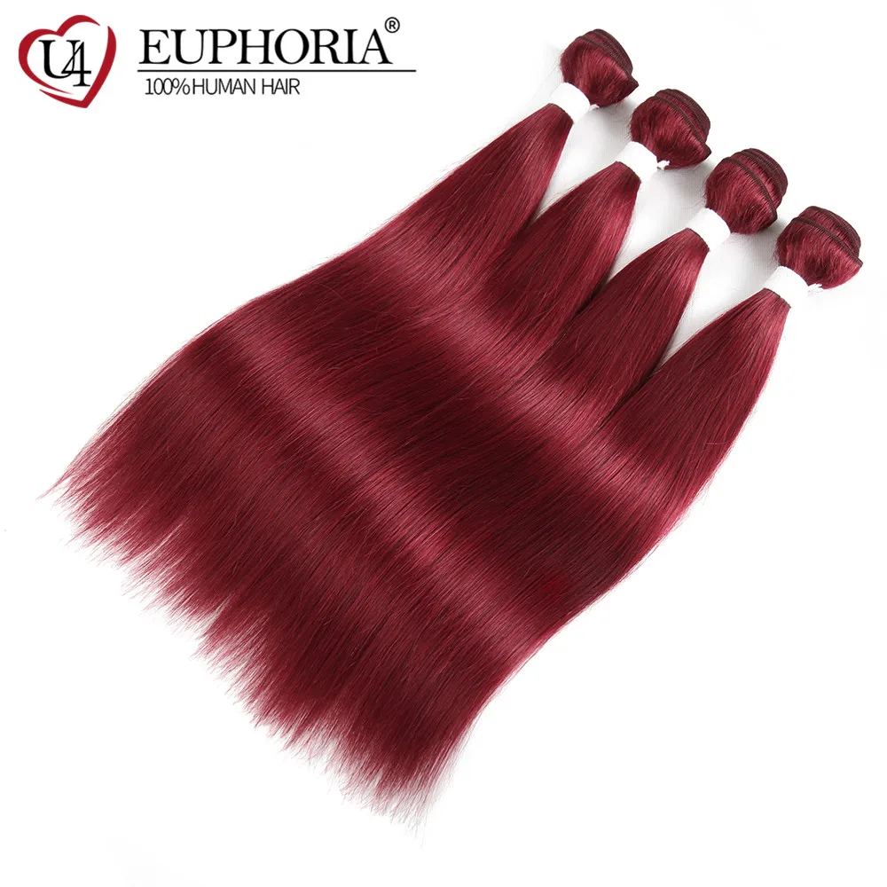 Прямые пряди волос с фронтальным кружевом 13x4 красный бордовый 99J бразильские Remy человеческие волосы 3 пряди с кружевной застежкой 4x4 Euphoria