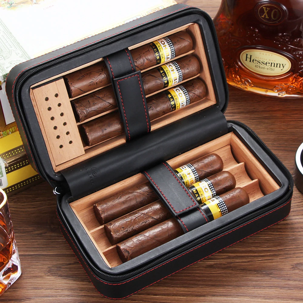 Кожаный чехол для сигар GALINER дорожный увлажнитель для сигар, с увлажнителем из кедрового дерева, портативный 4 держателя для сигар COHIBA