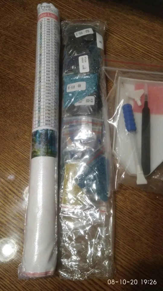 Заказ получен, все прекрасно. Хорошая упаковка, каждая картина намотана на валик. Вложены инструменты. Коробка слегка помята, но на качество товара не повлияло.