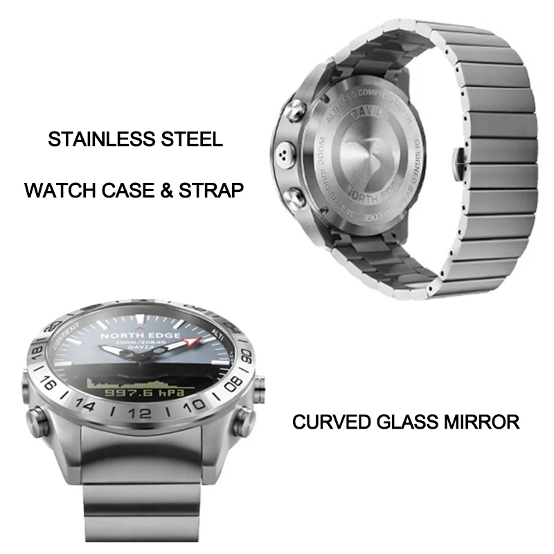 Кварцевые часы NORTH EDGE для дайвинга, мужские водонепроницаемые часы 200 м из нержавеющей стали, мужские часы, мужские электронные часы, спортивные часы