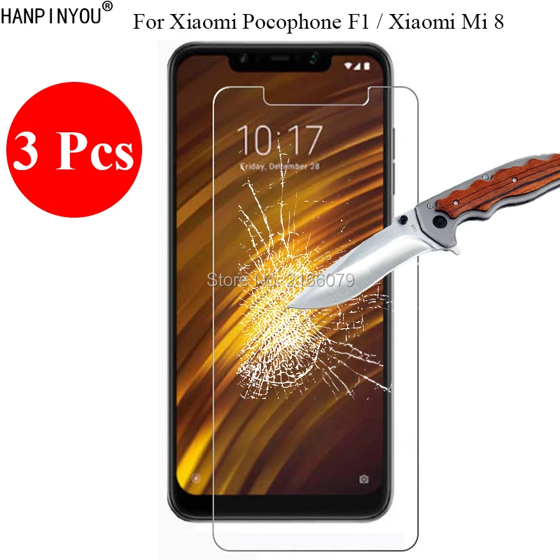 3 шт./лот, новинка, 9H, 2.5D, закаленное стекло, защита для экрана для Xiaomi Pocophone Poco F1 / Mi 8, защитная пленка + чистые инструменты