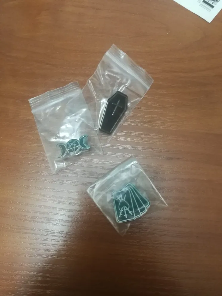 Такие малютки. Думала, будут побольше. Но, в целом, выглядят добротно и застежка крепкая. Жалко только, что на гробу дефект - капля краски. В глаза сильно не бросается, но вблизи видно сразу. В любом случае, за качество и работу продавца твердая пятерка)