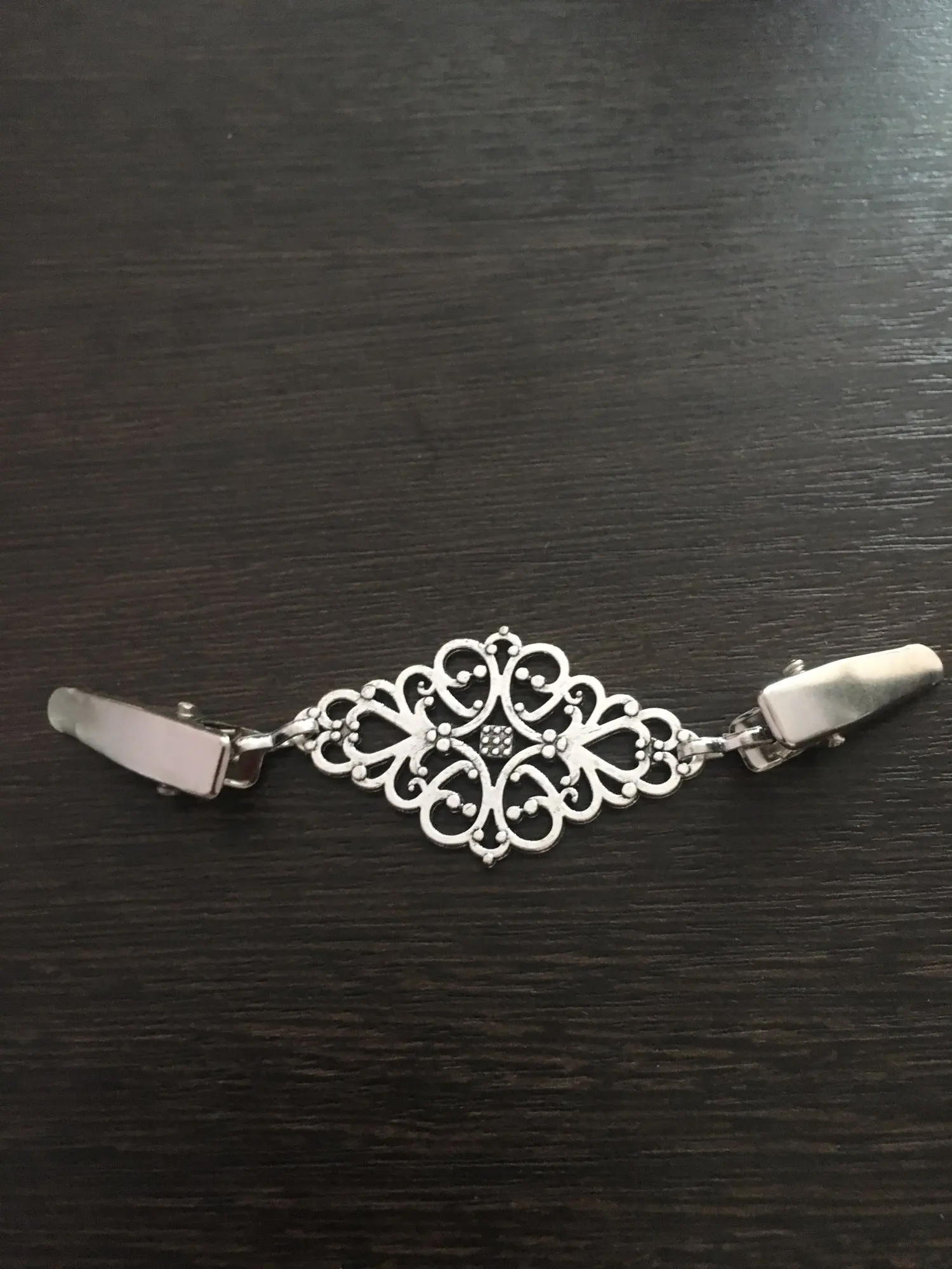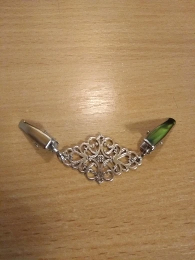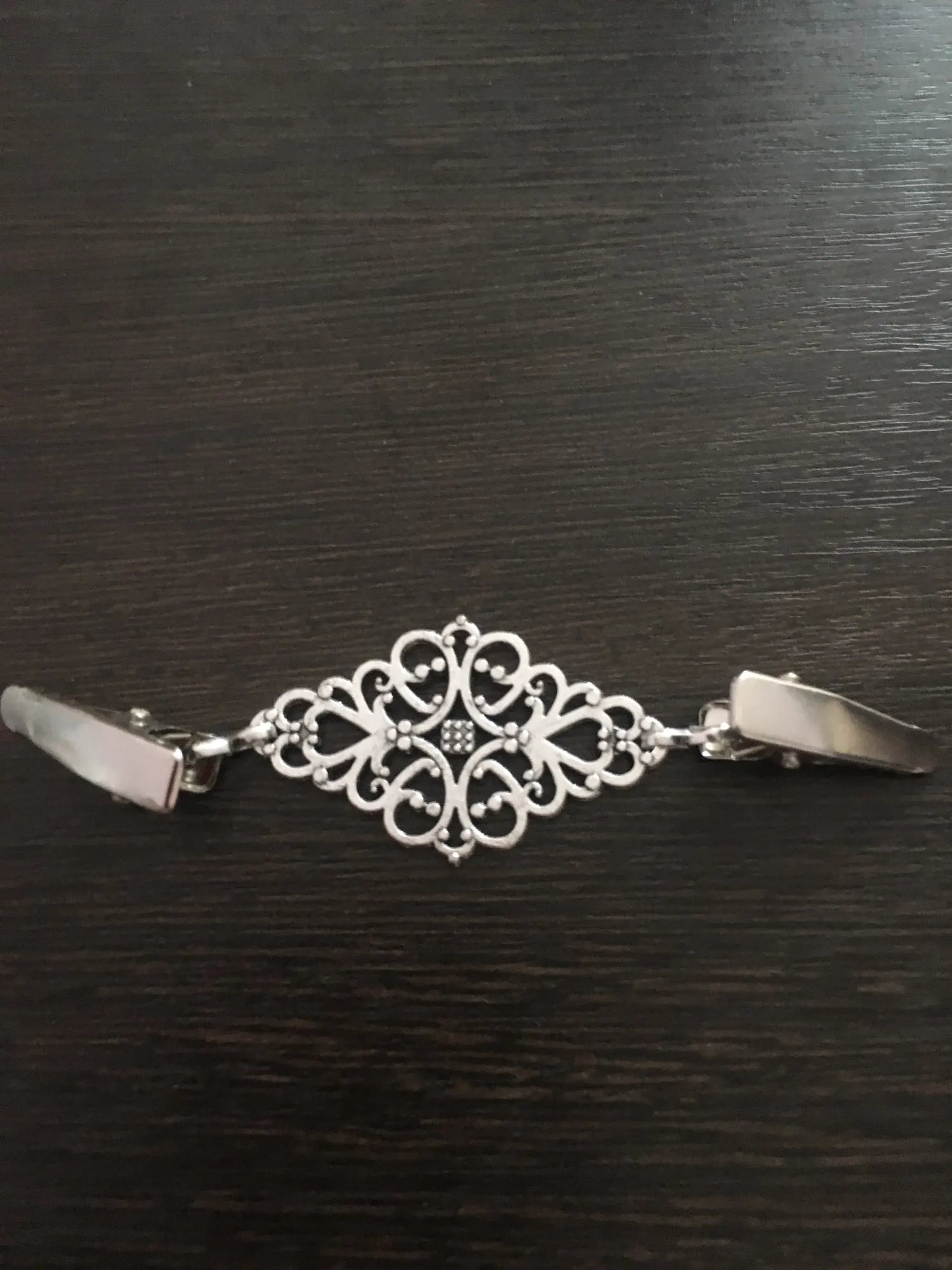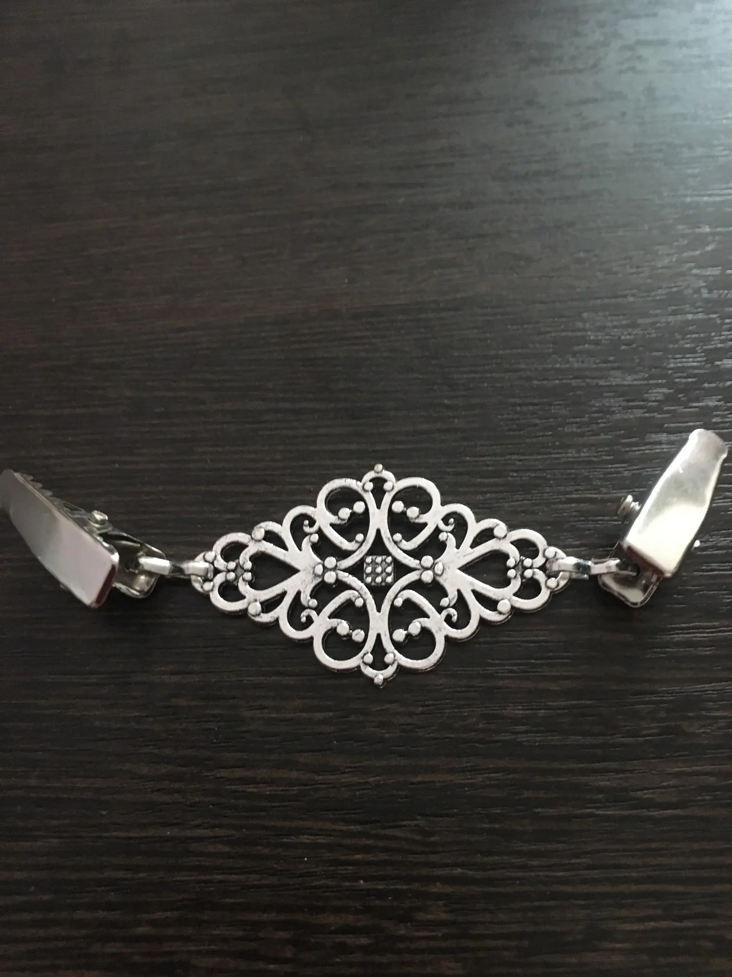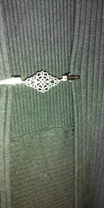 прекрасная вещица! брала чтобы застегивать кардиган, и со своей задачей справляется хорошо, не облезла, цвет хороший, заклёпки тоже, держат не плохо)) спасибо большое продавцу за товар, пришло в течение 1.5 или 2 месяцев в целости и сохранности