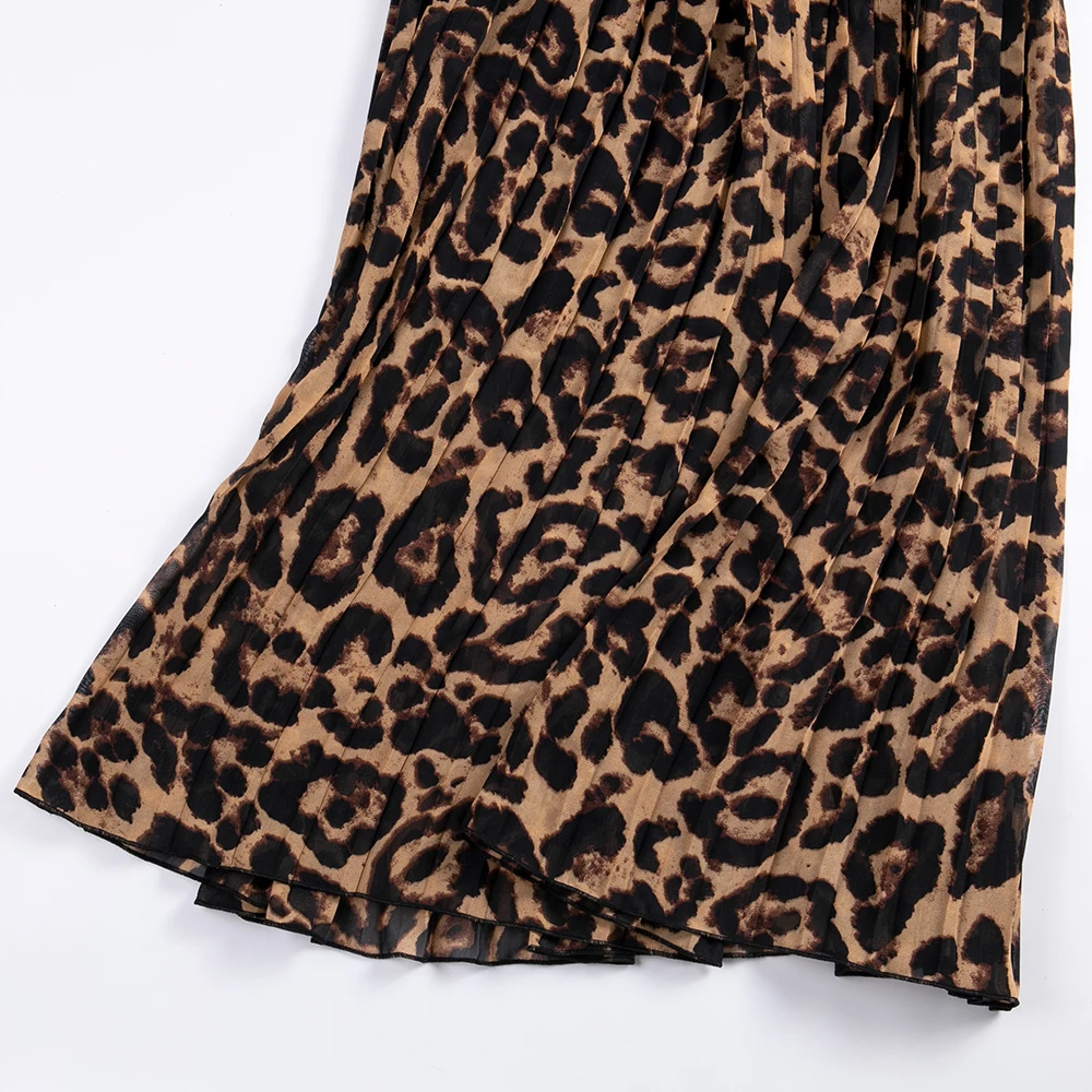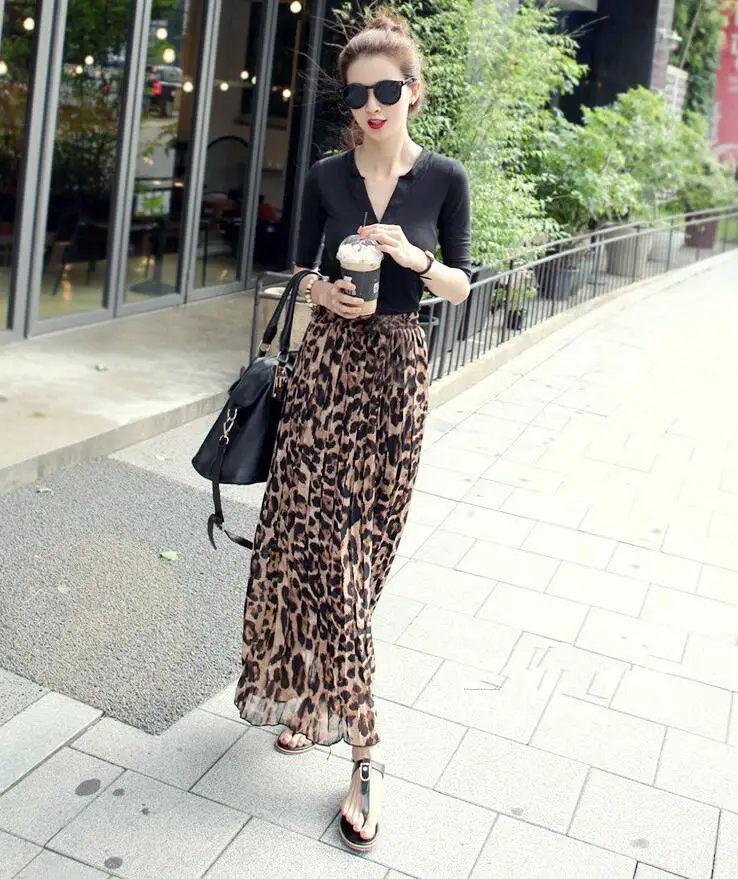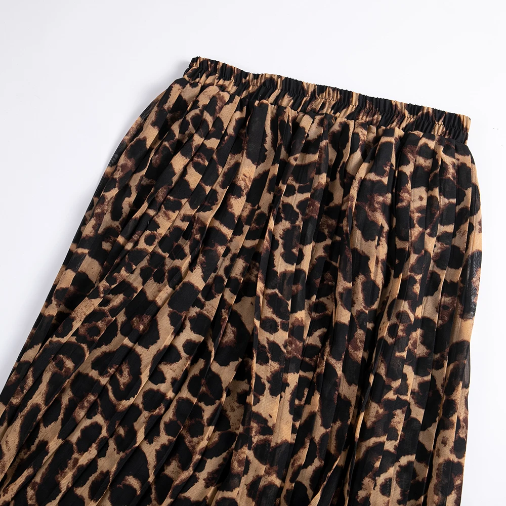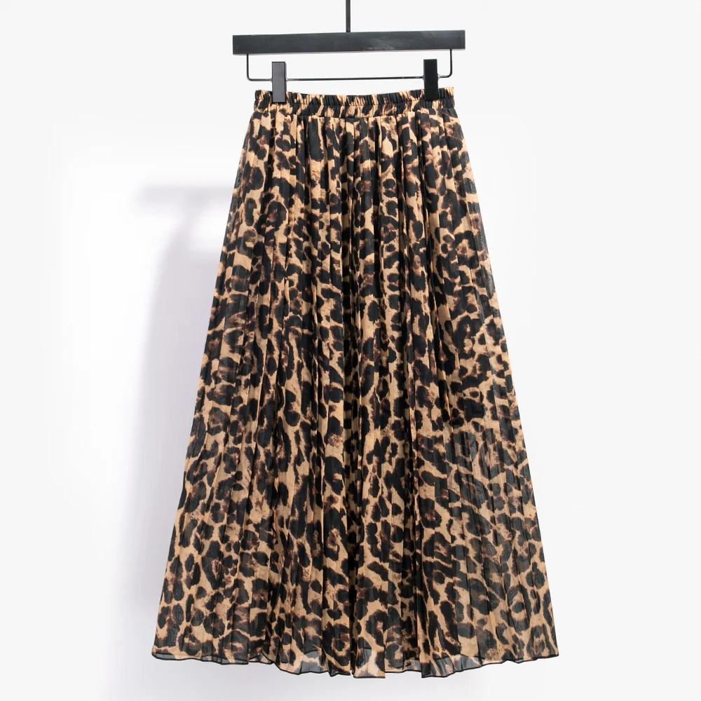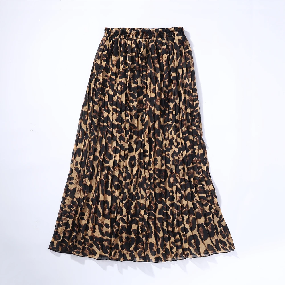 Летняя Осенняя Женская длинная юбка Qooth с леопардовым принтом, шифоновые плиссированные юбки с эластичным поясом, Повседневная пляжная юбка макси DF650