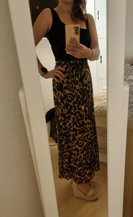 Mooie lange rok, past iedere maat van S tm XL denk ik. Goede kwaliteit en snel gekomen. Ik raad deze verkoper aan