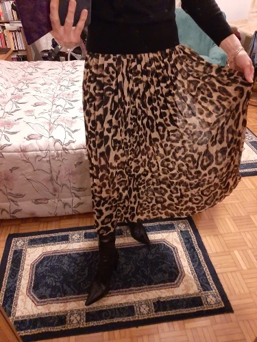 Юбка красивая, я был приятно удивлен. Она была идеальна, если она была немного длиннее, я измерил 1,69 м, но будет TB весной. Я рекомендую его.