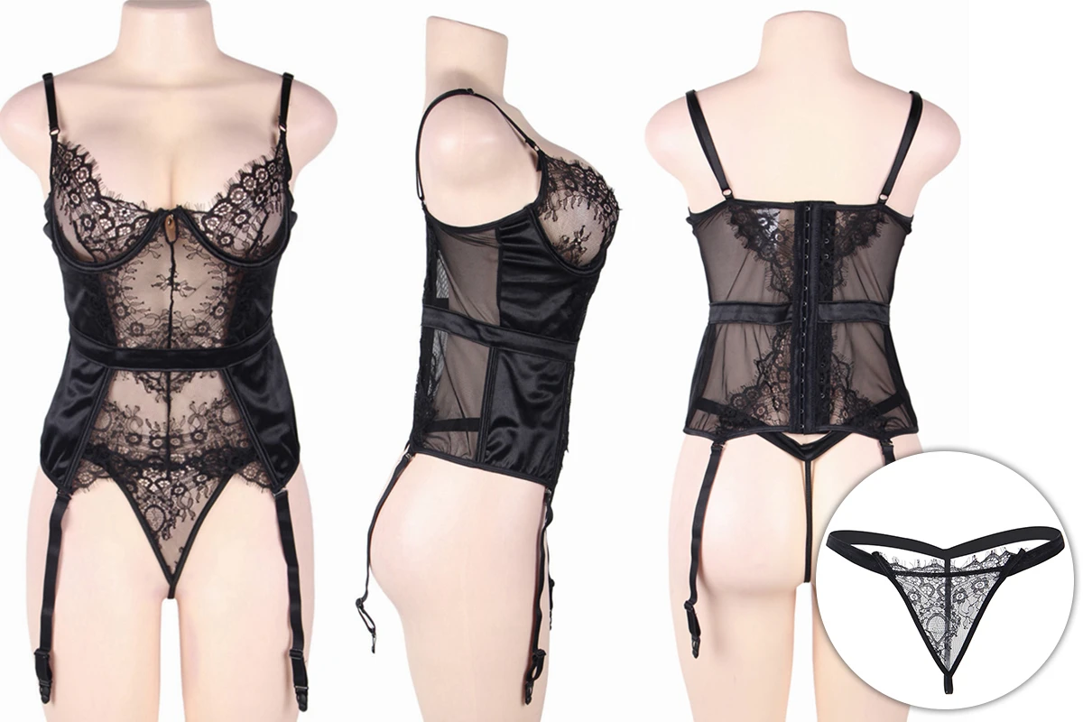 Женская атласная ночная сорочка, кружевная прозрачная нижняя одежда, большой размер, эротическая одежда