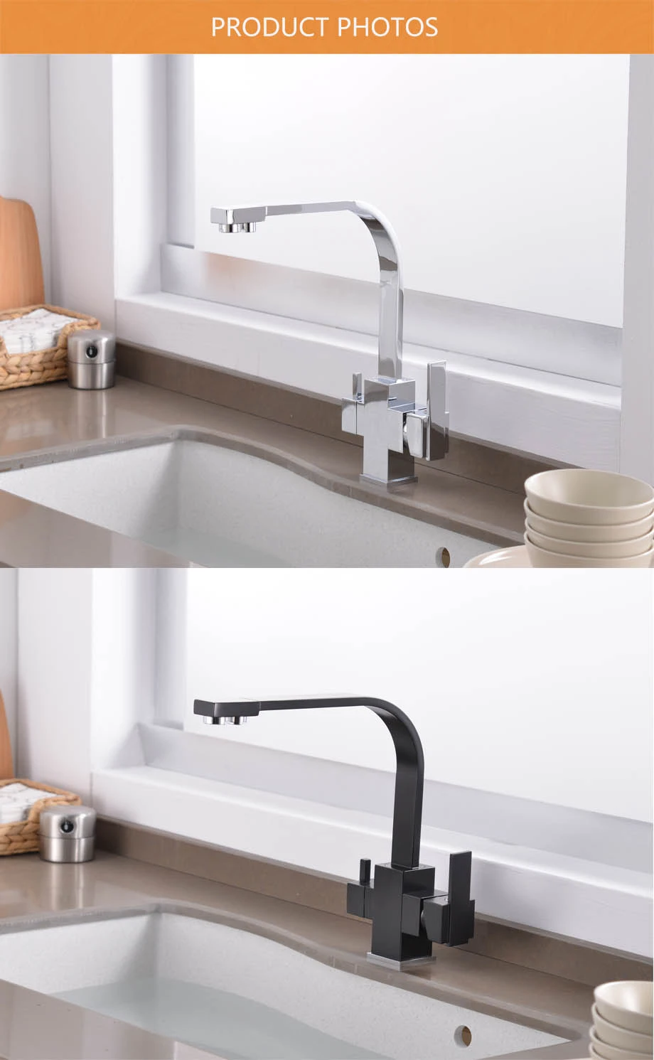 Кран для питьевой воды XOXO 81058, смеситель кухонный для горячей и холодной воды, с питьевым краном, для крепления на раковине