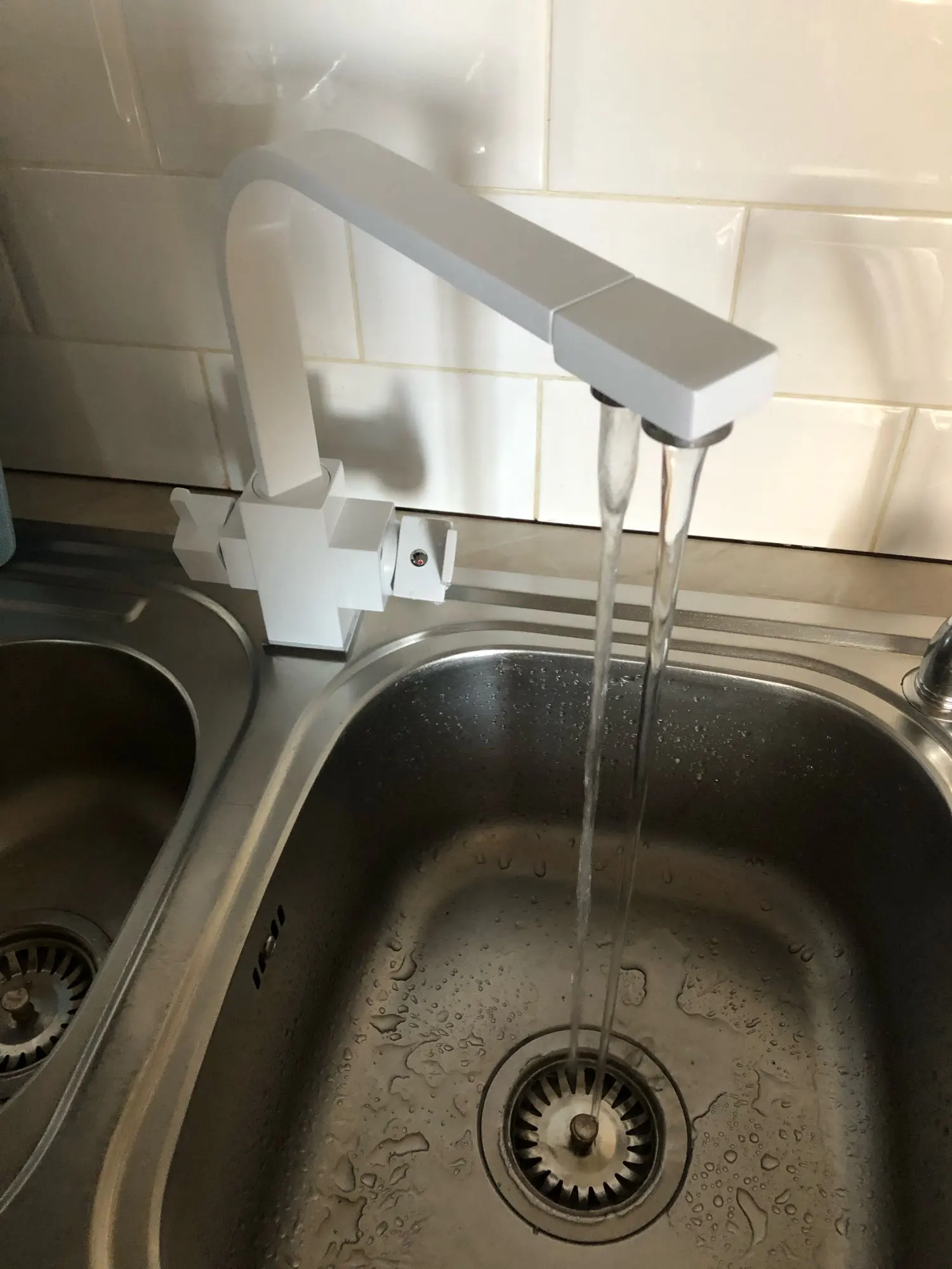 Отличный смеситель. Это уже второй. Сначала был чёрный. Работает отлично.