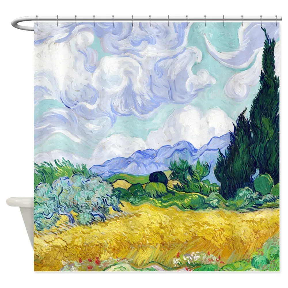 Ван Гог пшеничное поле кипарисы-декоративная тканевая занавеска для душа (69 "x 70")