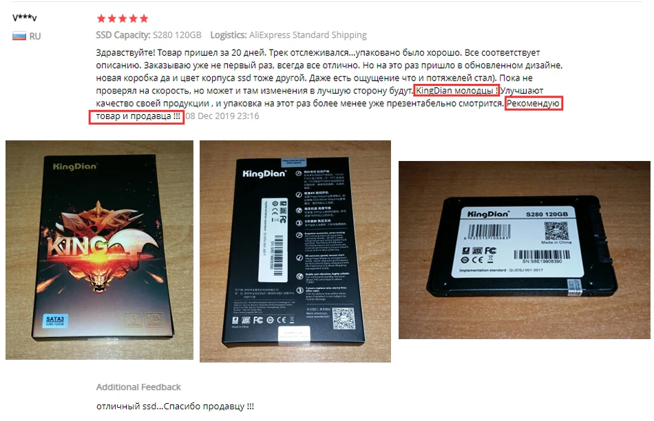 Заказывали товар в июне, заказали 20 дисков трек не отслеживался, прошло 2 месяца, подали на спор, в итоге не получили ни деньги обратно, ни SSD диски !!!! Споры продолжаются дальше!!!! Продавец на запросы не реагирует ни как, служба поддержки алиэкспресс тоже пишет одно и тоже ведём споры подождите!!! Кидалово какое то!!!