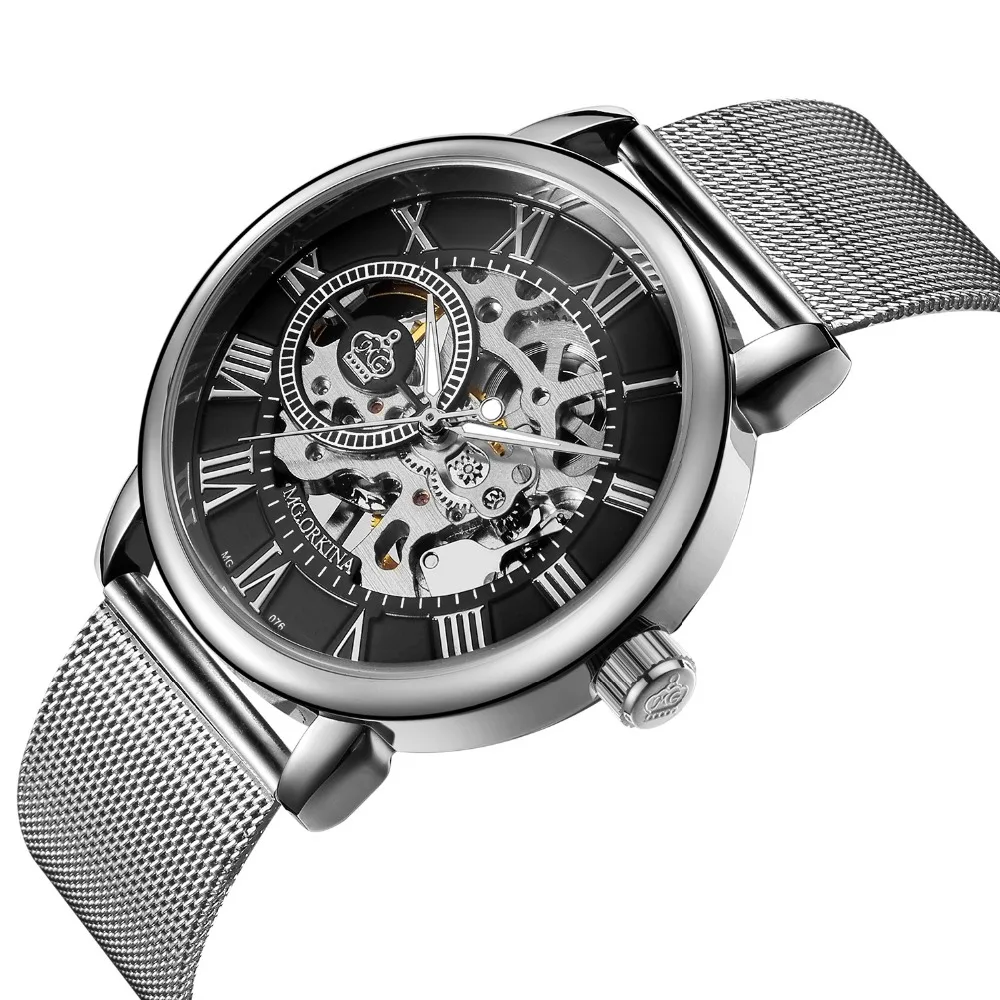 Часы-скелетоны Мужские механические из нержавеющей стали с сетчатым ремешком