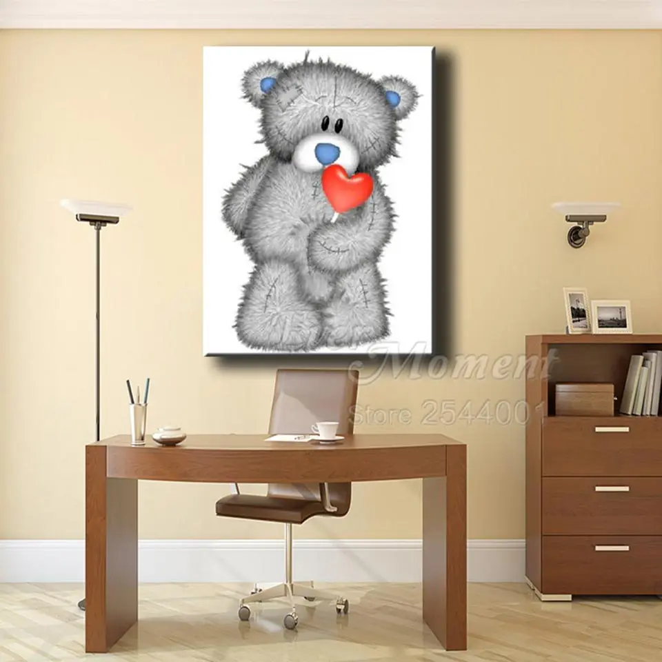 Алмазная вышивка с медведем, сердечком, квадратной формы
