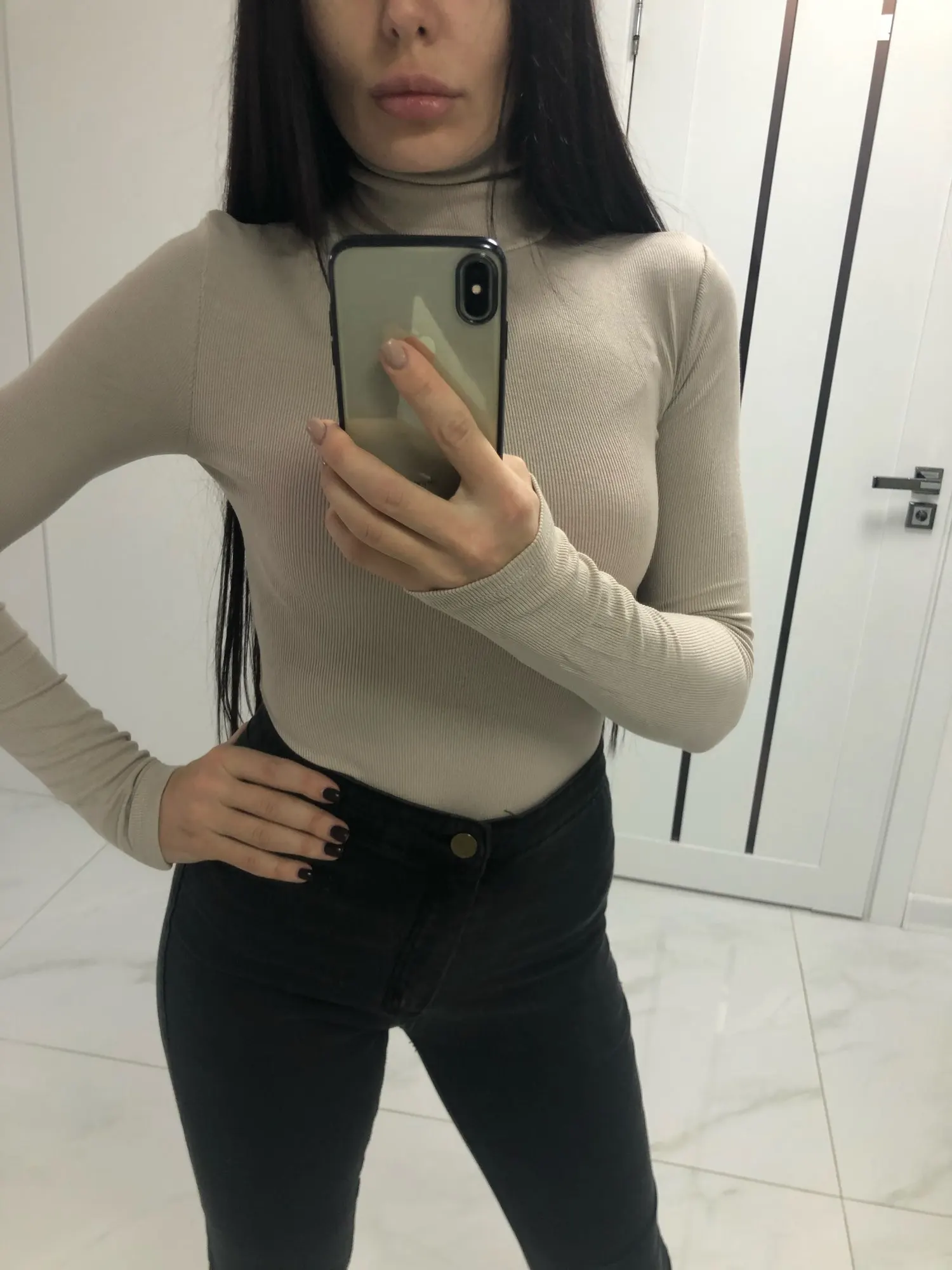 Женское боди в рубчик с длинным рукавом