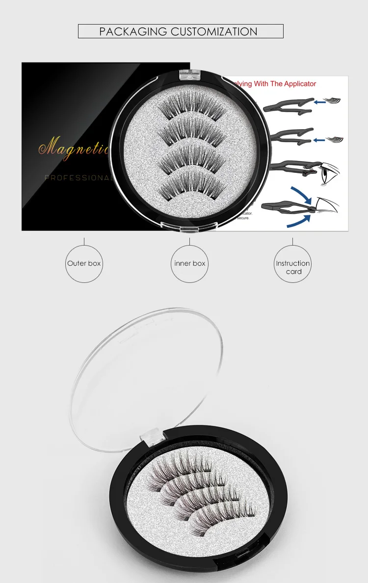 Genailish 4 шт.пара Магнитный ресницы 3D магнит ресниц наращивание мягкий натуральных длинных волос ресницы на магните упаковочная коробка