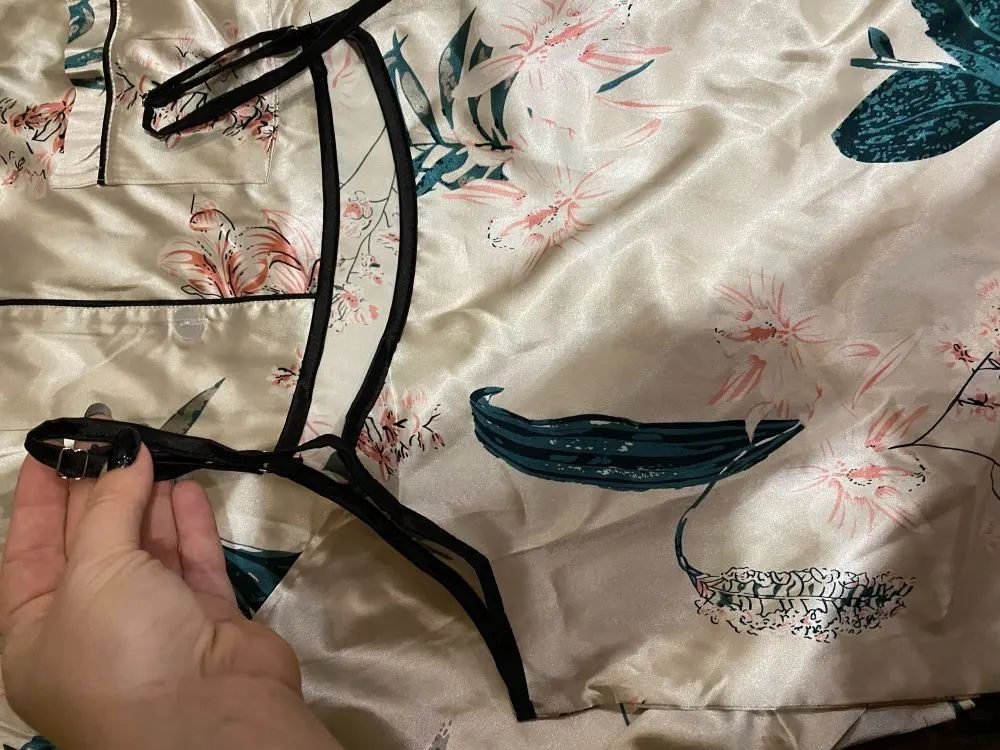 Спасибо продавцу за быструю отправку и доставку. Пижамка очень классная, приятная к телу. На мой 42-44 М подошла идеально. Резиночка для волос в комплекте и мешочек для хранения из такой же ткани. Швы ровные. Пара ниток торчали, легко убрала ножницами.