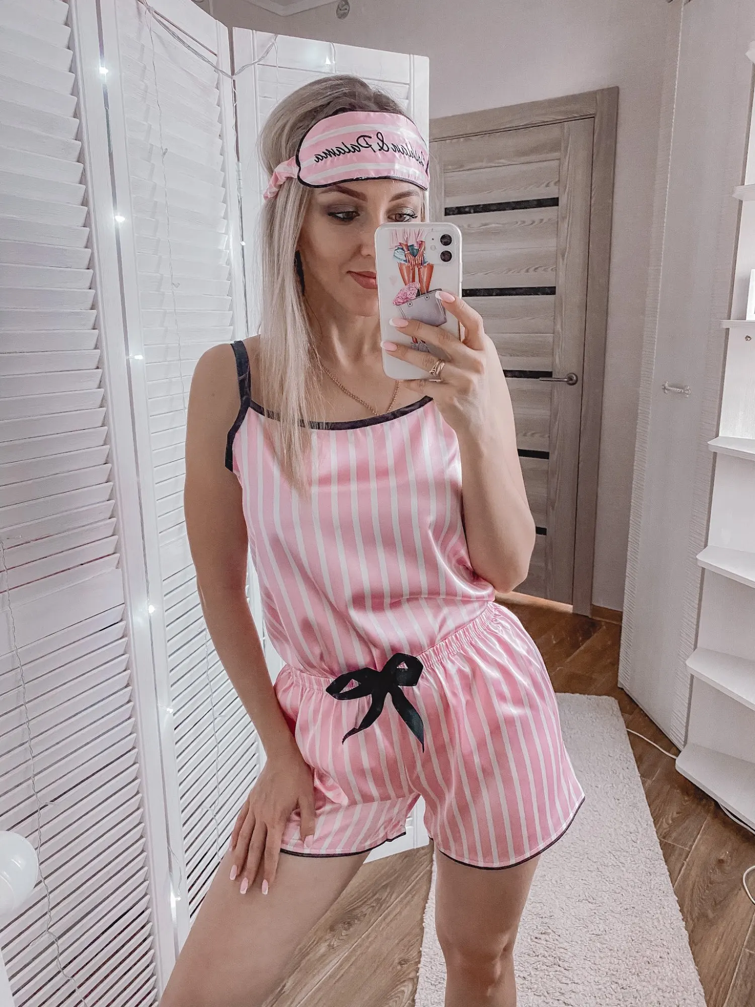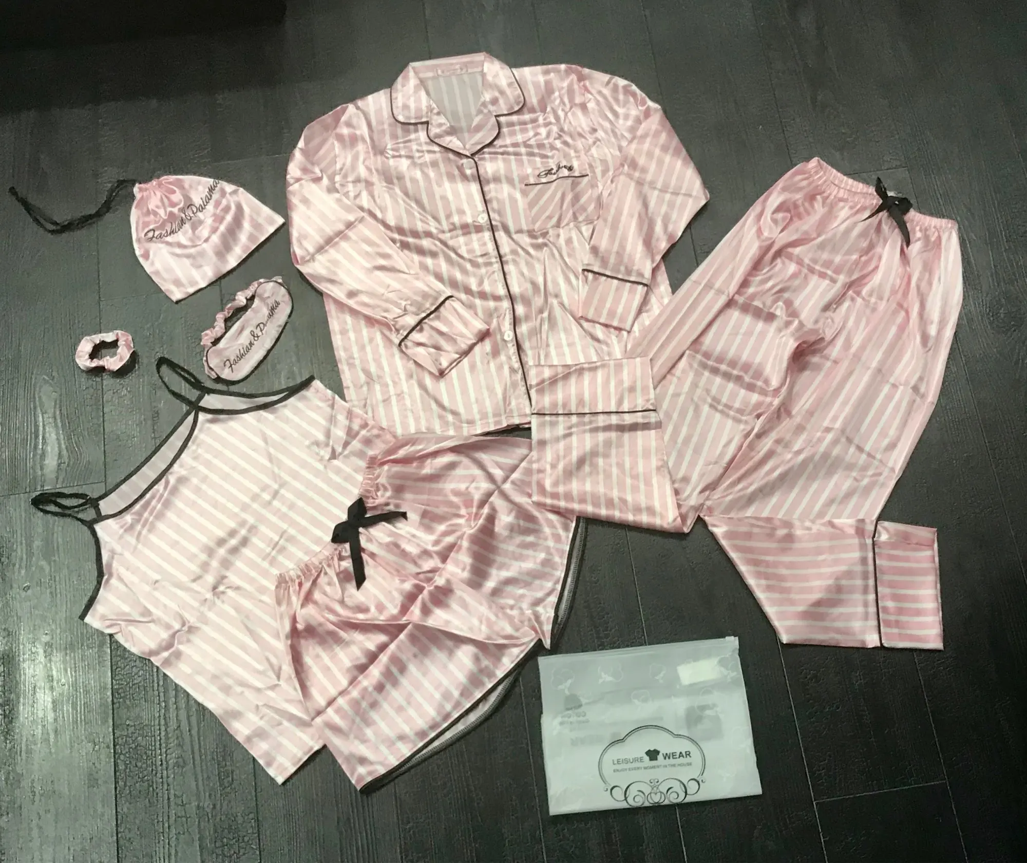 Пижамный комплект JULY'S SONG женский из 7 предметов, комплект из искусственного шелка в полоску, одежда для сна, домашняя одежда, розовая, весна-лето