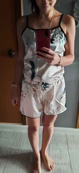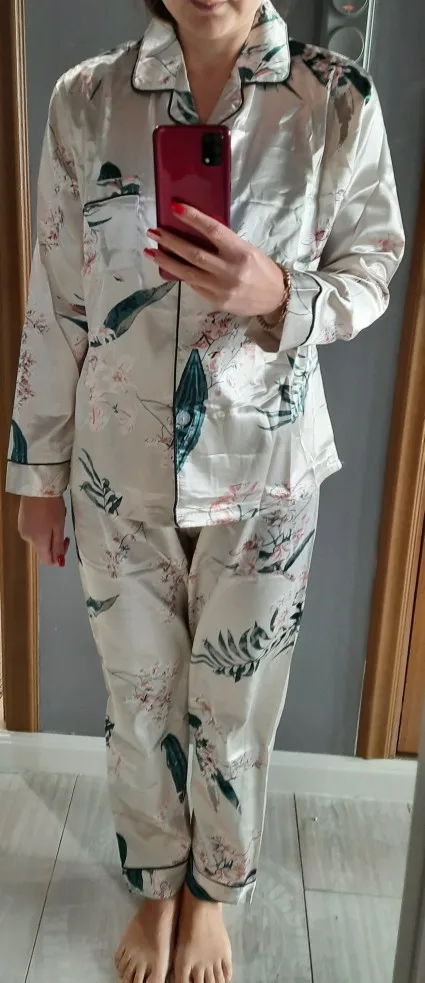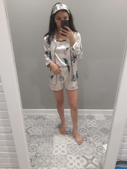 Клёвая пижамка, немного с блеском, но дёшево не выглядит. Ношу размер S, пижаму заказала L - подошла идеально.