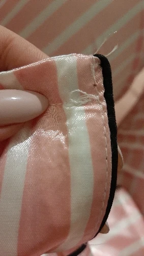 Пижама мягкая, красивая, есть небольшие минусы, на фото видно. Моя оказалась с небольшими порезами, где в скором времени появятся дырки, это был самый большой минус. Покупала для носки дома, поэтому пижамой всё равно осталась довольна, тк в магазине такая в два раза дороже. Доставка Мега быстрая, пришла за неделю.