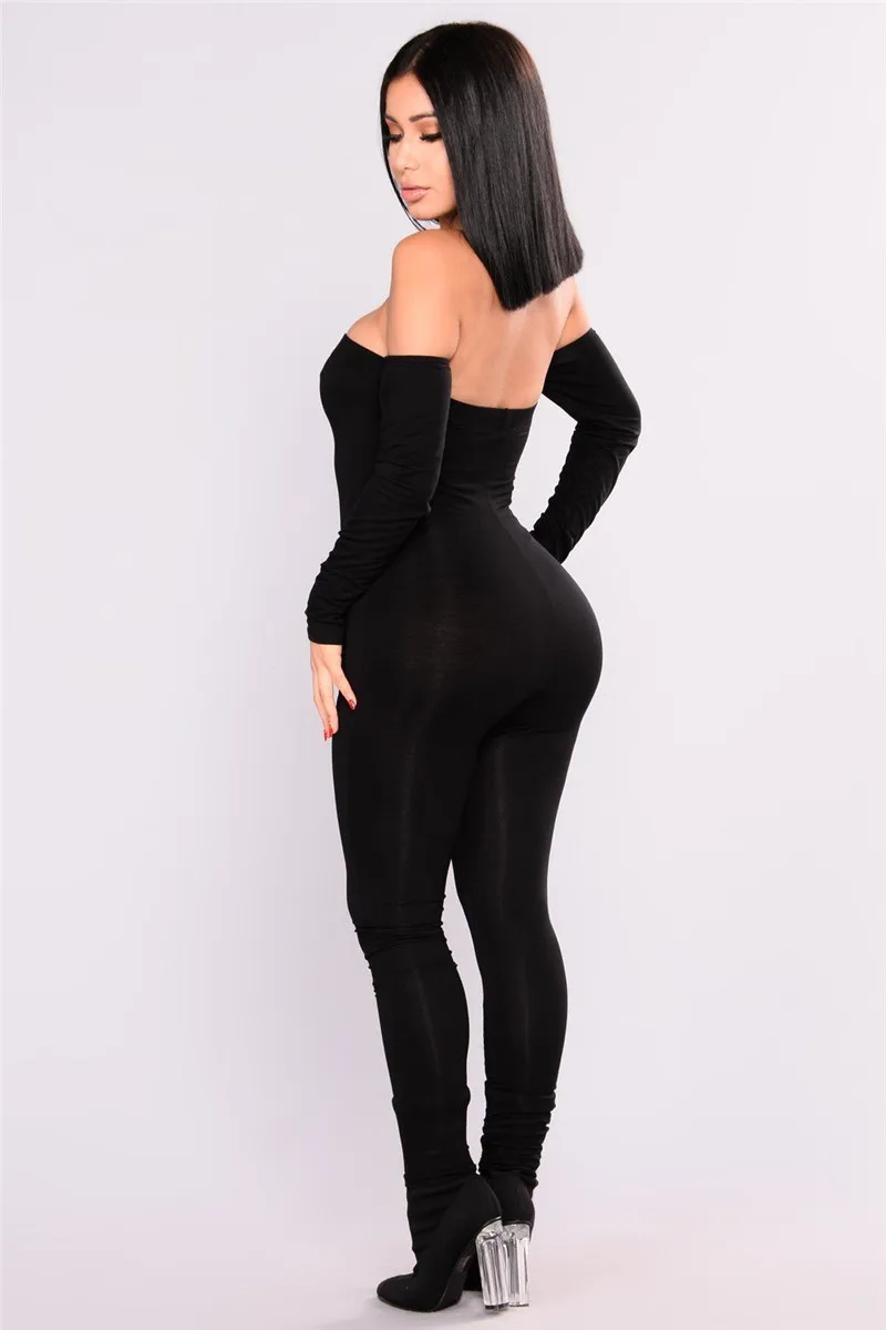 Модные Женские однотонные комбинезоны с длинным рукавом и открытыми плечами, Сексуальные облегающие комбинезоны для весны и осени