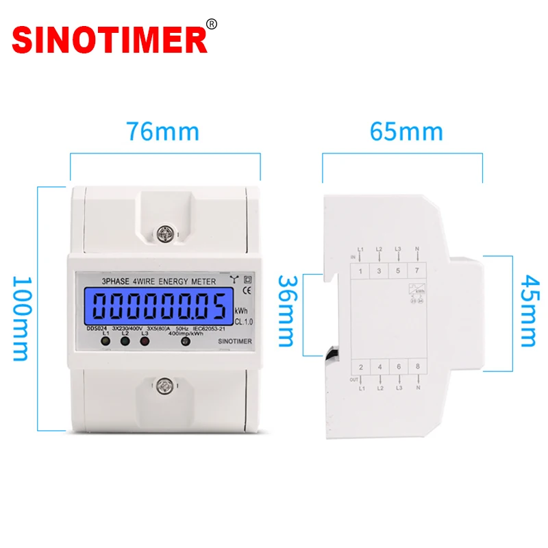 Din-рейка 3 фазы 4 провода электронный ватт энергопотребление счетчик Wattmeter кВтч 5-80A 380 В переменного тока 50 Гц ЖК-дисплей с подсветкой