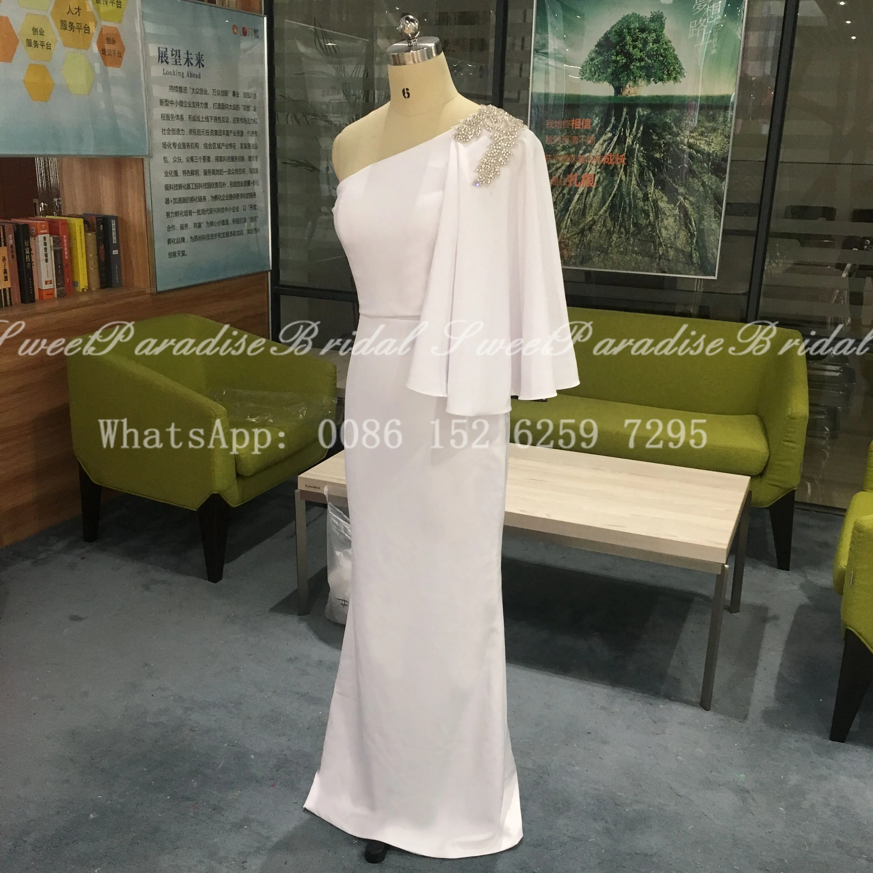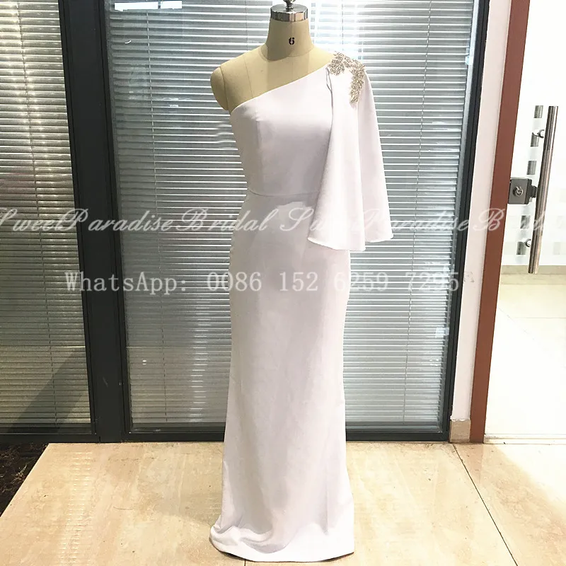 Белое платье-футляр на одно плечо, платья подружки невесты с серебряными бусинами и кристаллами, женское длинное свадебное платье, платья