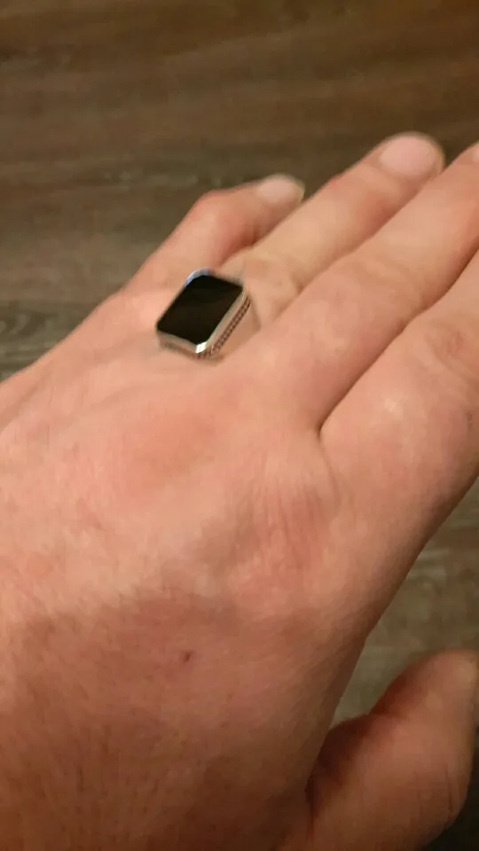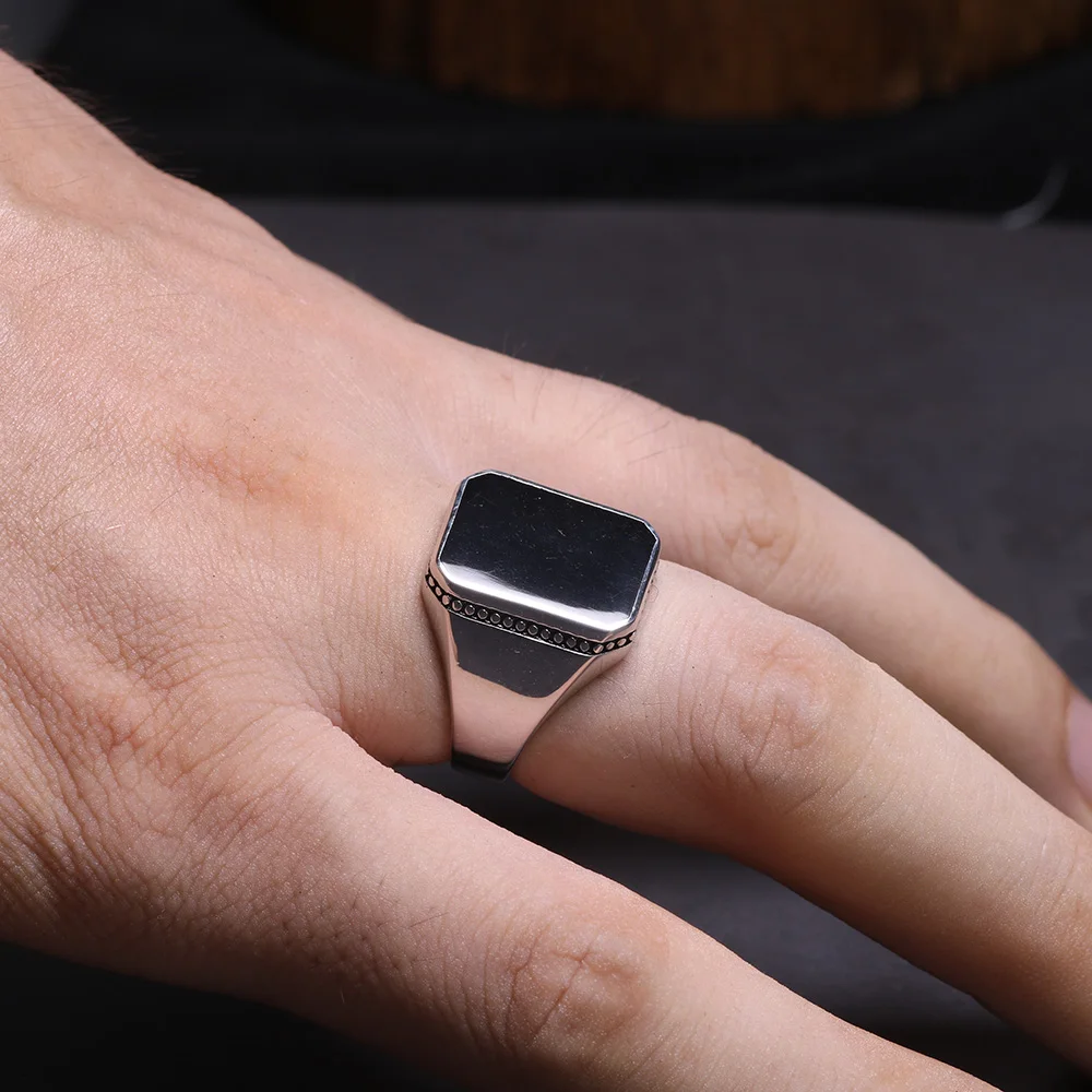 Кольцо мужское из серебра 925 пробы, с черным квадратным плоским гелевым камнем
