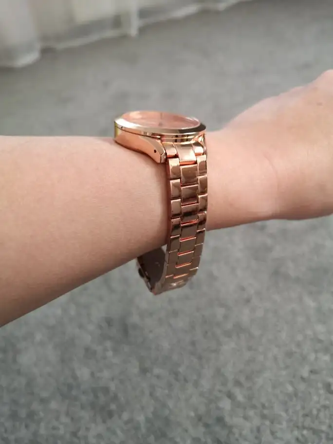 Часьi на вид вьiглядят не плохо, но очень массивньie, брала gold rose, но если бьi не цвет, подумала бьi, что мужские, посмотрю, потемнеют потом, а так все норм
