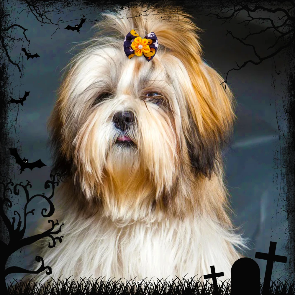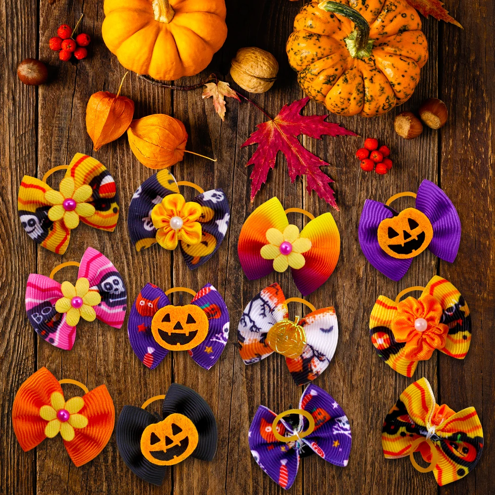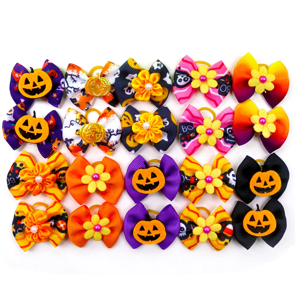 10 шт., банты для волос для собак и щенков, смешанные милые банты для волос в виде тыквыцветов, аксессуары для шерсти собак, банты для груминга собак с резиновыми лентами, товары для домашних животных