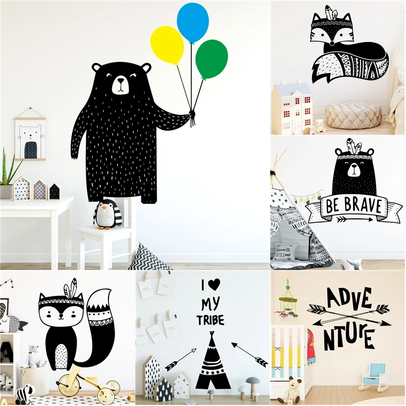 Наклейка на стену с изображением этнических животных, шаров, медведя, лисы, стрел, для детской комнаты, домашний декор, виниловые обои, декор для детской спальни, настенные наклейки