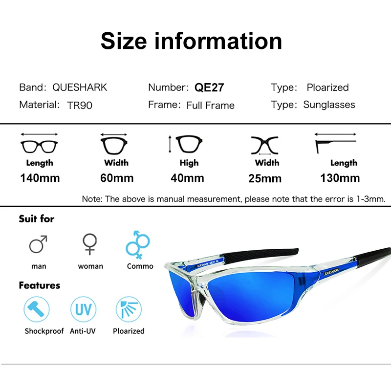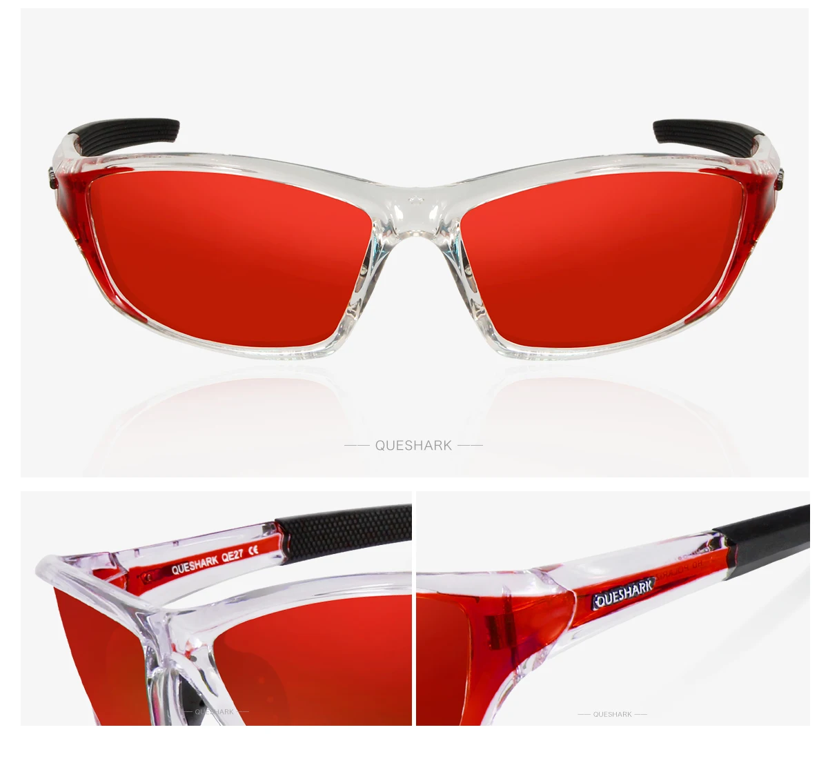 Поляризованные солнцезащитные очки QUESHARK TR90 для мужчин и женщин, для спорта, в прозрачной оправе, для бега, походов, велоспорта, вождения