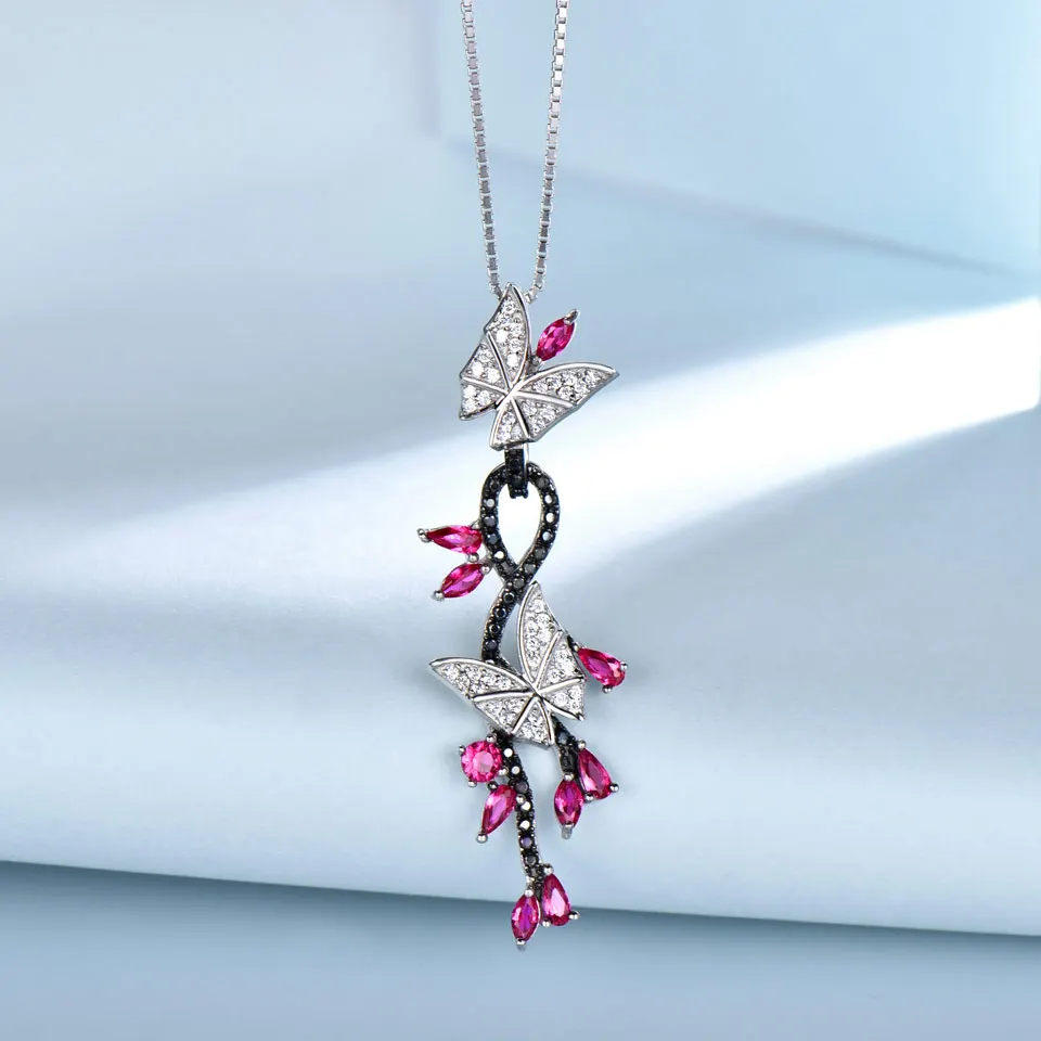 Женские серьги-кольца UMCHO, элегантное ожерелье из стерлингового серебра 925 пробы с рубиновым Наборы украшений с бабочкой