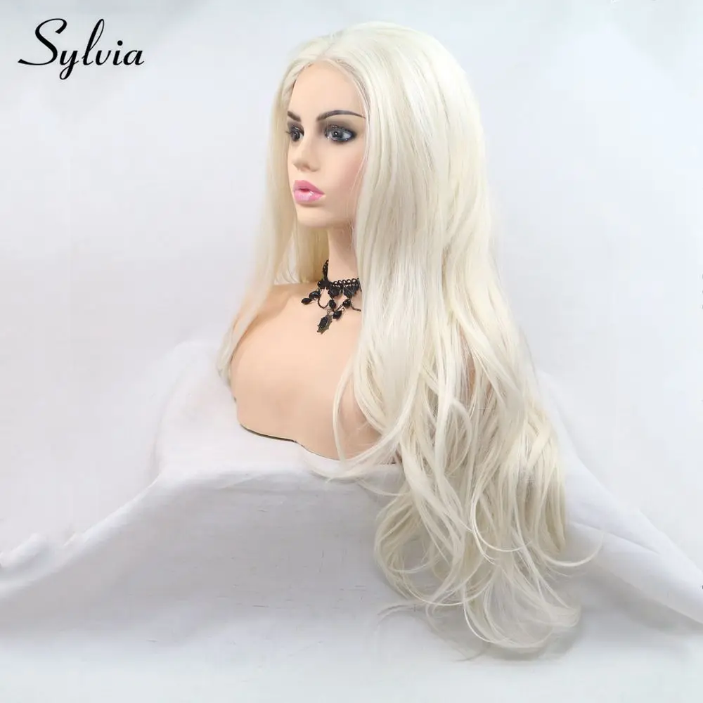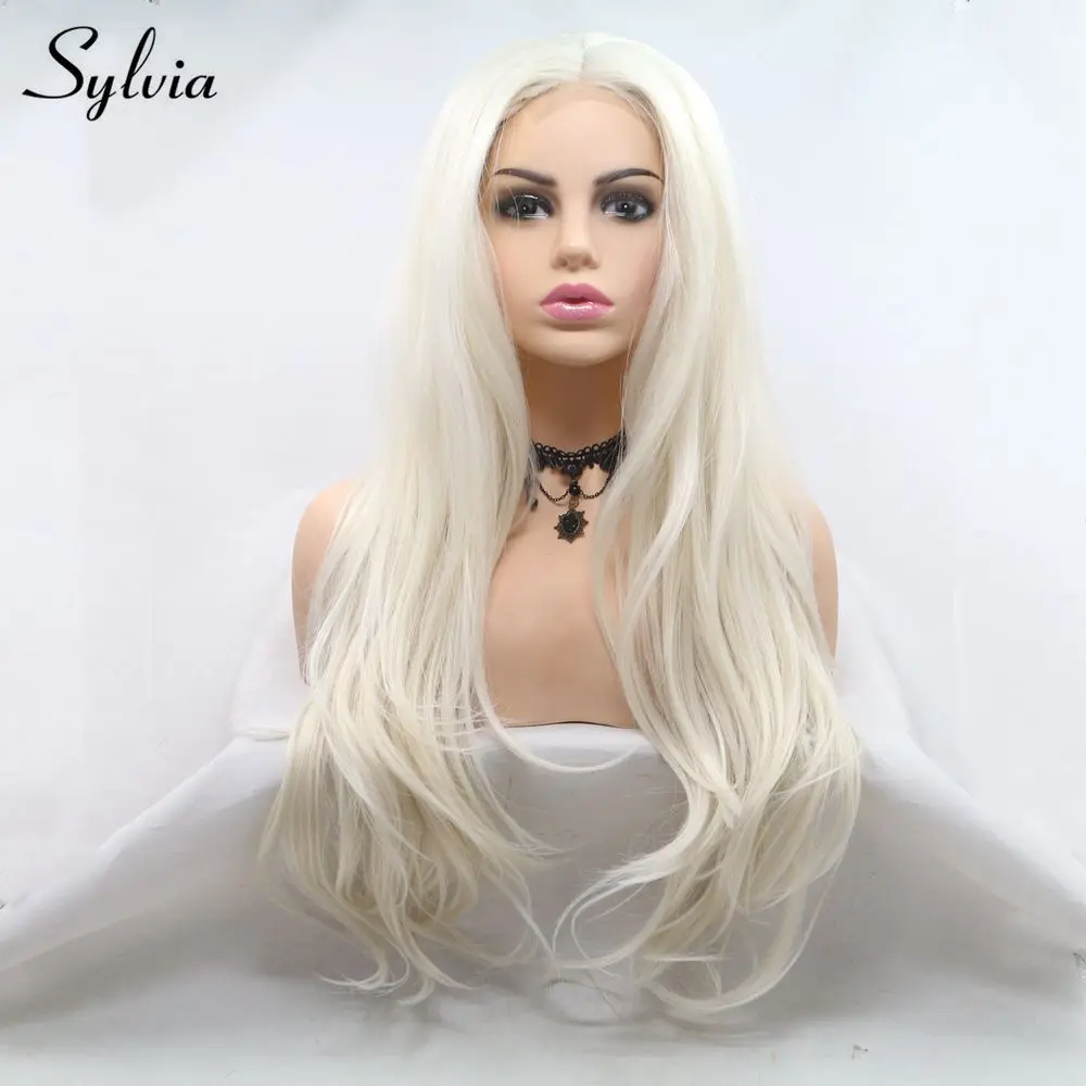 Sylviaсинтетические парики, средняя часть, длинные объемные волны, Платиновые, светлые волосы, машина, сделано U, кружевные парики для женщин, вечерние, косплей