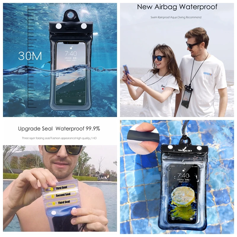 Водонепроницаемая сумка для телефона, Воздушная плавающая сумка для плавания, для походов по реке, для дайвинга, пляжа, бассейна, для моря, для купания, чехол для телефона, сумка 7 дюймов