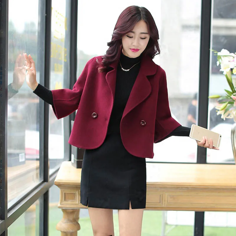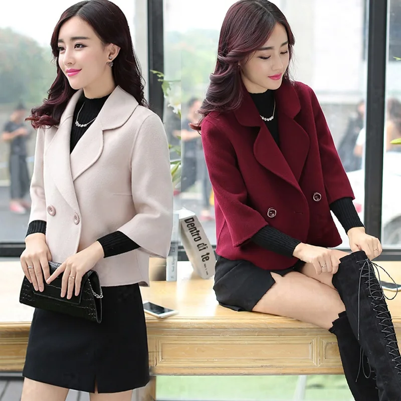 Новинка 2018, Женское шерстяное Полушерстяное пальто, короткое модное облегающее пальто, женское Двухрядное пальто на пуговицах на осень-зиму, Chaquetas Mujer