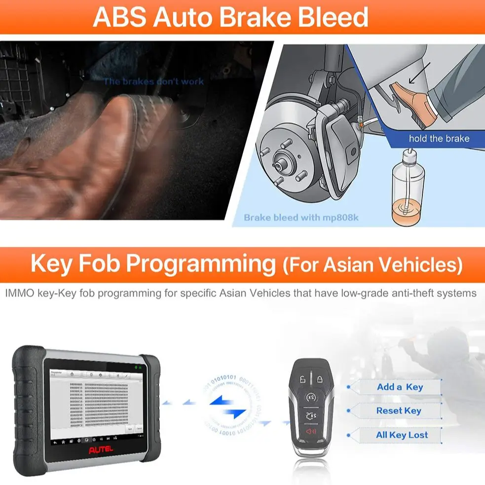 MK808BT поставляется с полезным ABS тормозным кровотечением горячей функции, которая позволяет техникам и домашней механике кровоточить воздух из ABS модуля и экономит ваше время и деньги, принимая вашего ребенка в дилерский центр или магазин.Примечание:Вам все еще нужно проливать воздух вручную в тормозные линии после ABS тормозного кровотечения.