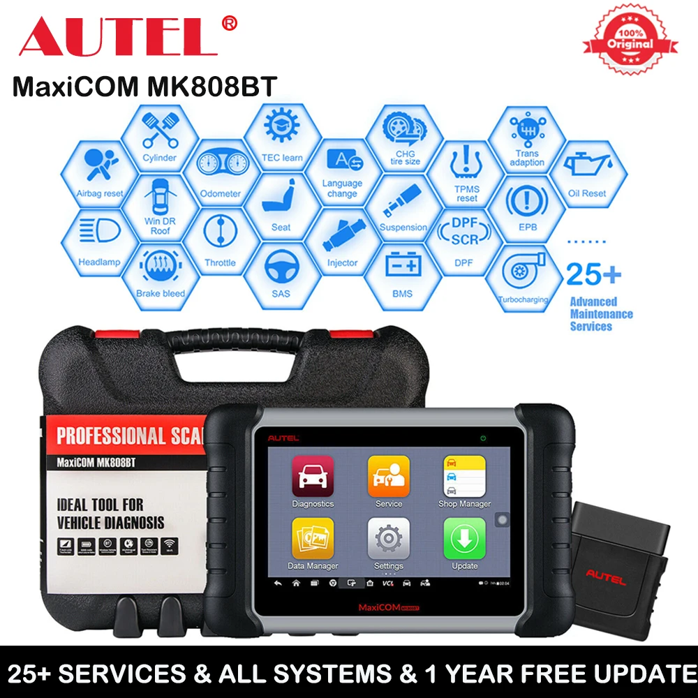 Диагностический сканер Autel MK808BT OBDII, диагностический сканер, считыватель кодов для всех систем с сбросом масла, EPB, DPF, ABS, 2021
